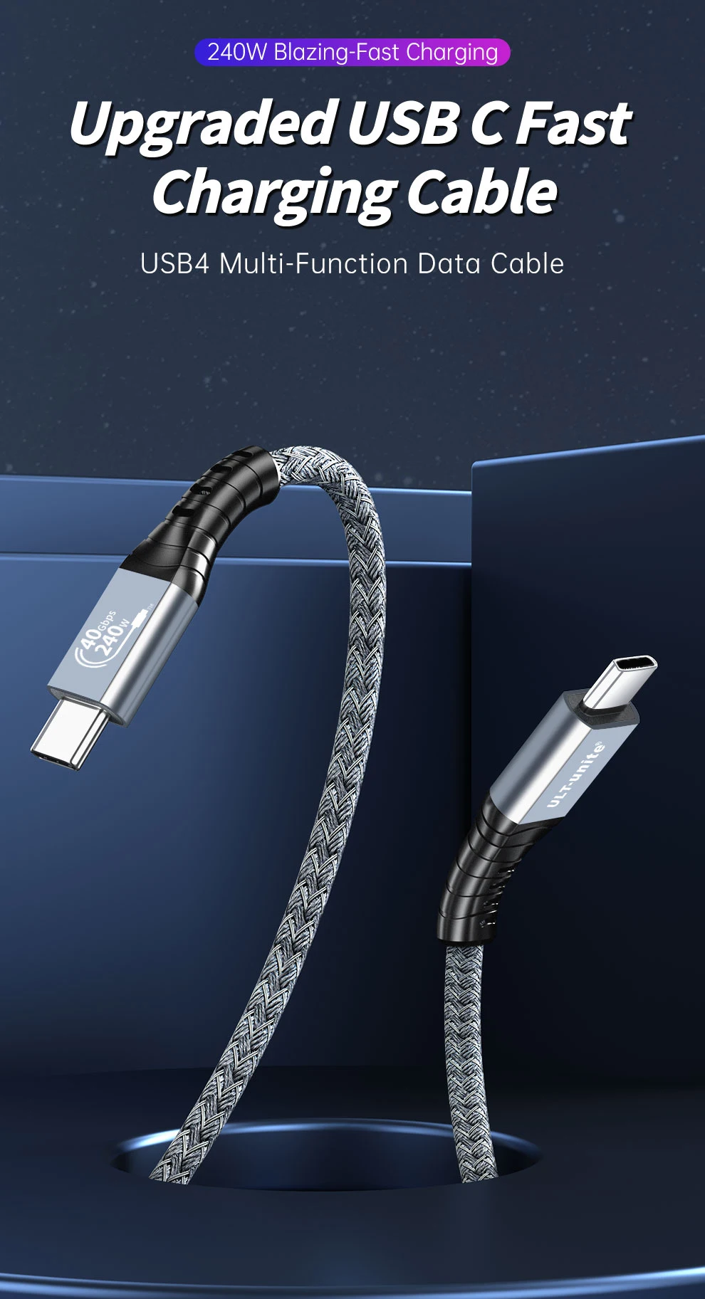 1. Carga rápida de 240W: carga USB-C dispositivo a la velocidad máxima. Utiliza el chip E-marker para entregar con seguridad hasta 240W (48V 5A) de potencia.