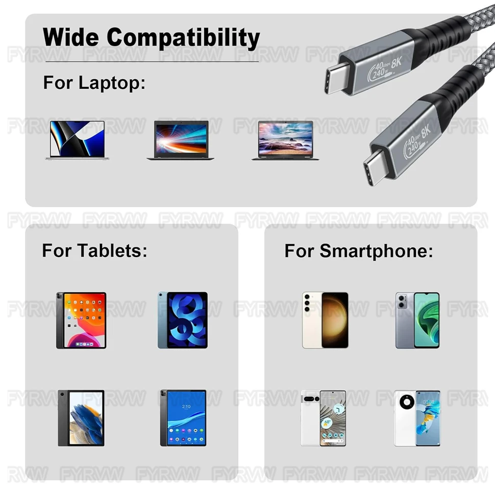 Cable USB4 Gen3 USB C 240W 5K/60Hz Compatible Thunderbolt 3/4/DP/PCle USB-C a USB C 40Gbps Cable rápido USB4.0 para Mac Pro
