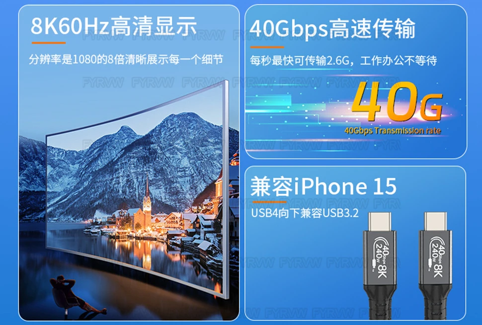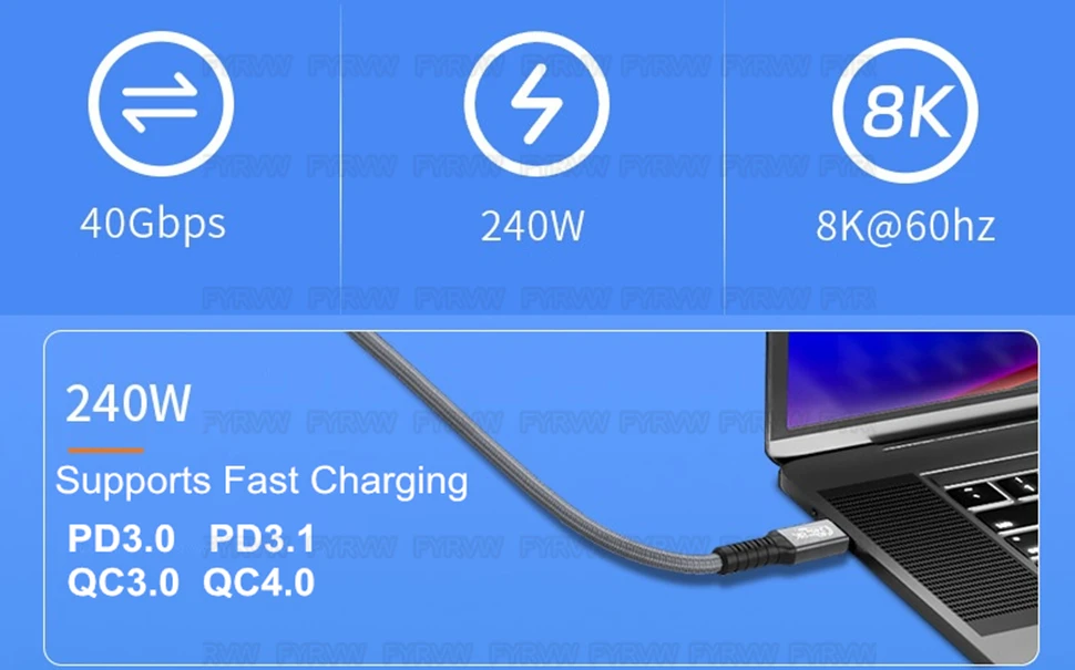 40 Gbps: potencia de carga de 240 W, admite salida de vídeo de 8 K,