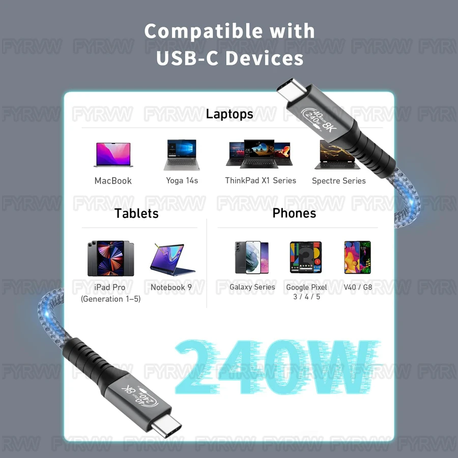 Cable USB4 Gen3 USB C 240W 5K/60Hz Compatible Thunderbolt 3/4/DP/PCle USB-C a USB C 40Gbps Cable rápido USB4.0 para Mac Pro