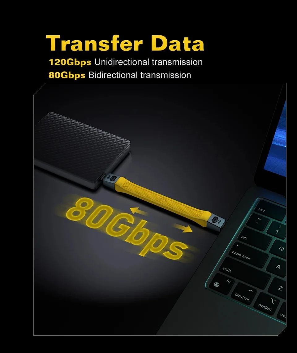 🚀 Transferencia de datos increíbles de 80 Gbps: experimente velocidades de transferencia de datos ultrarrápidas de hasta 80 Gbps, lo que permite transferencias de archivos grandes fluidas, flujos de trabajo de alto rendimiento y copias de seguridad ultrarrápidas.