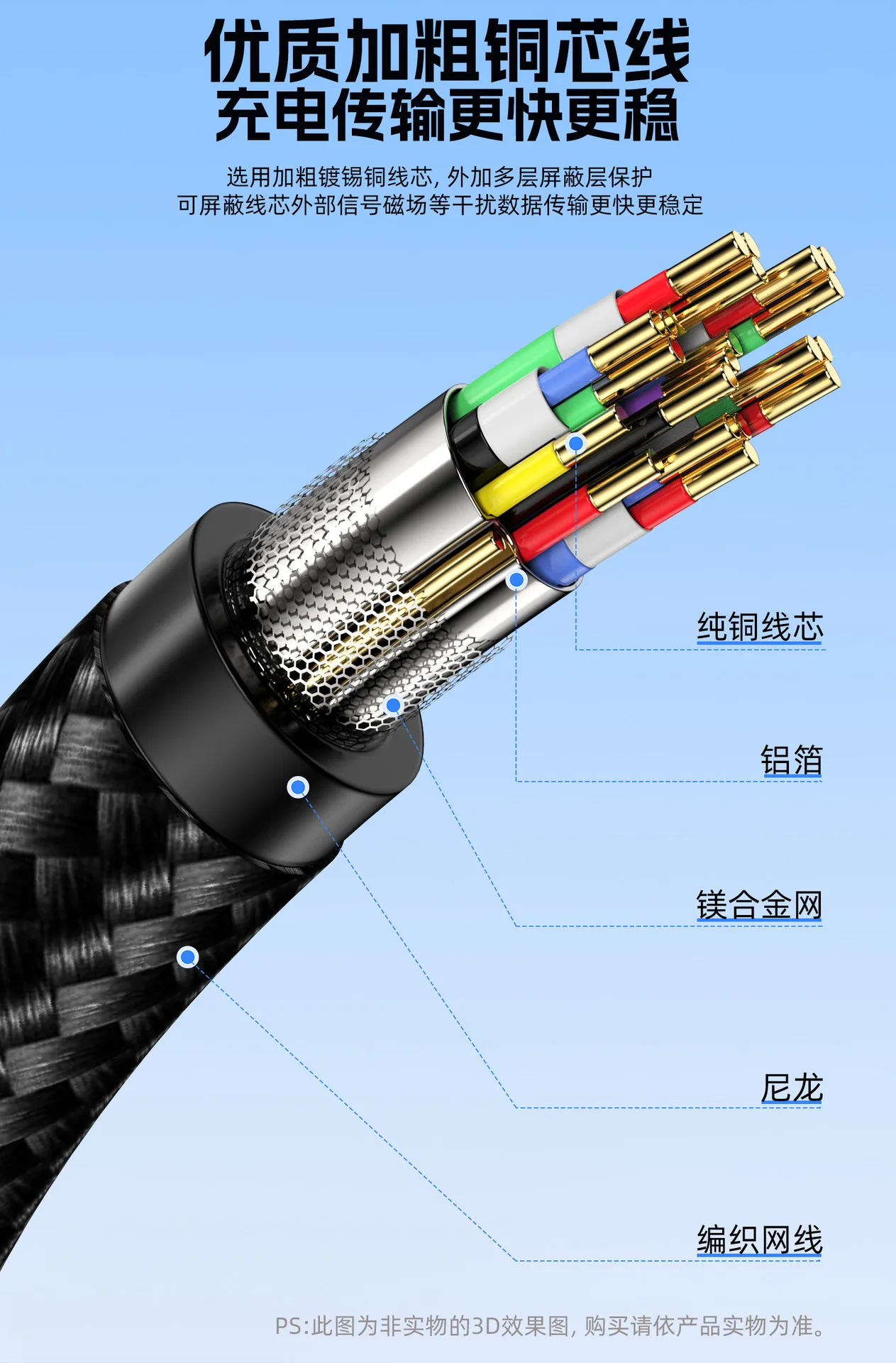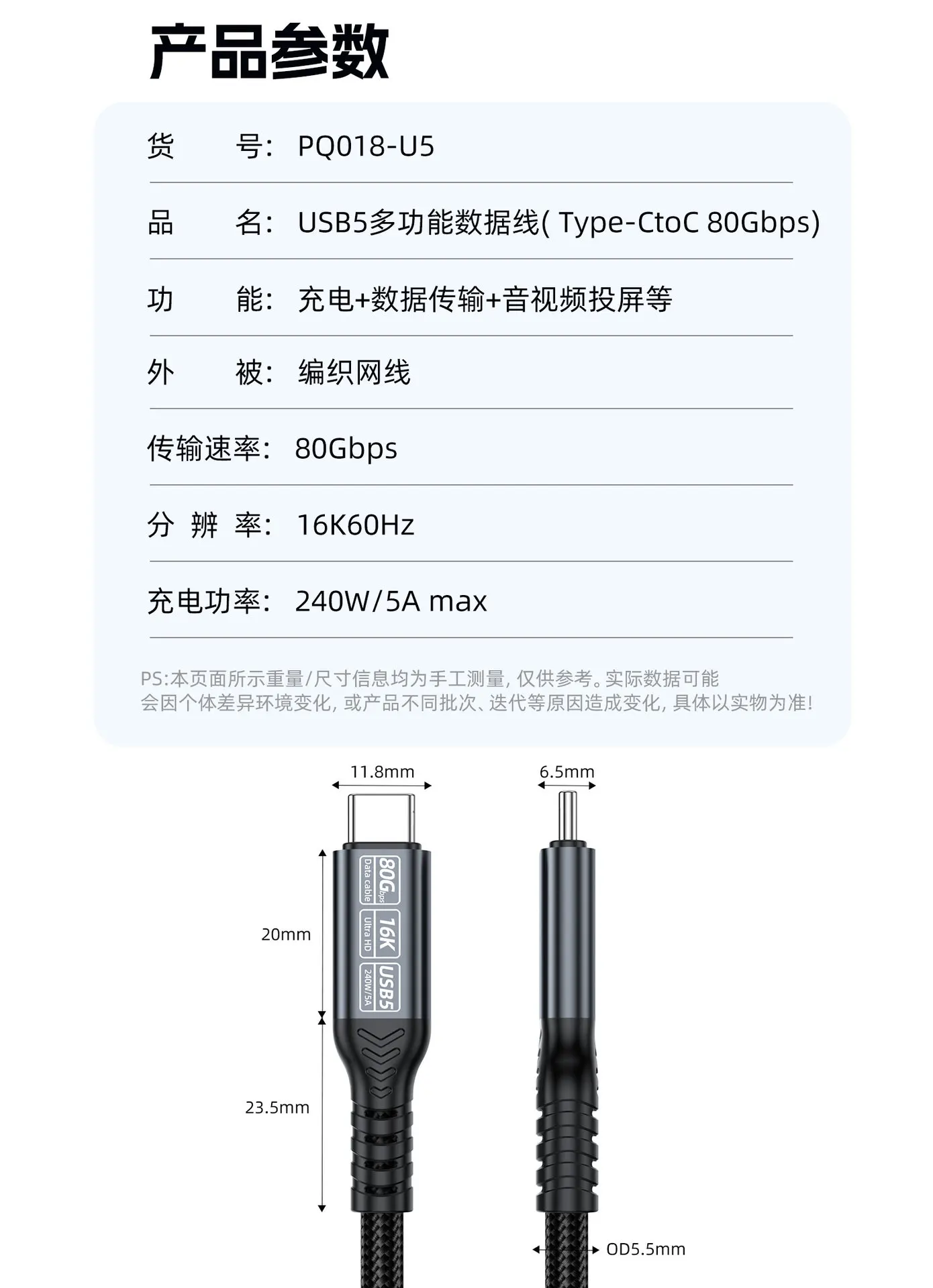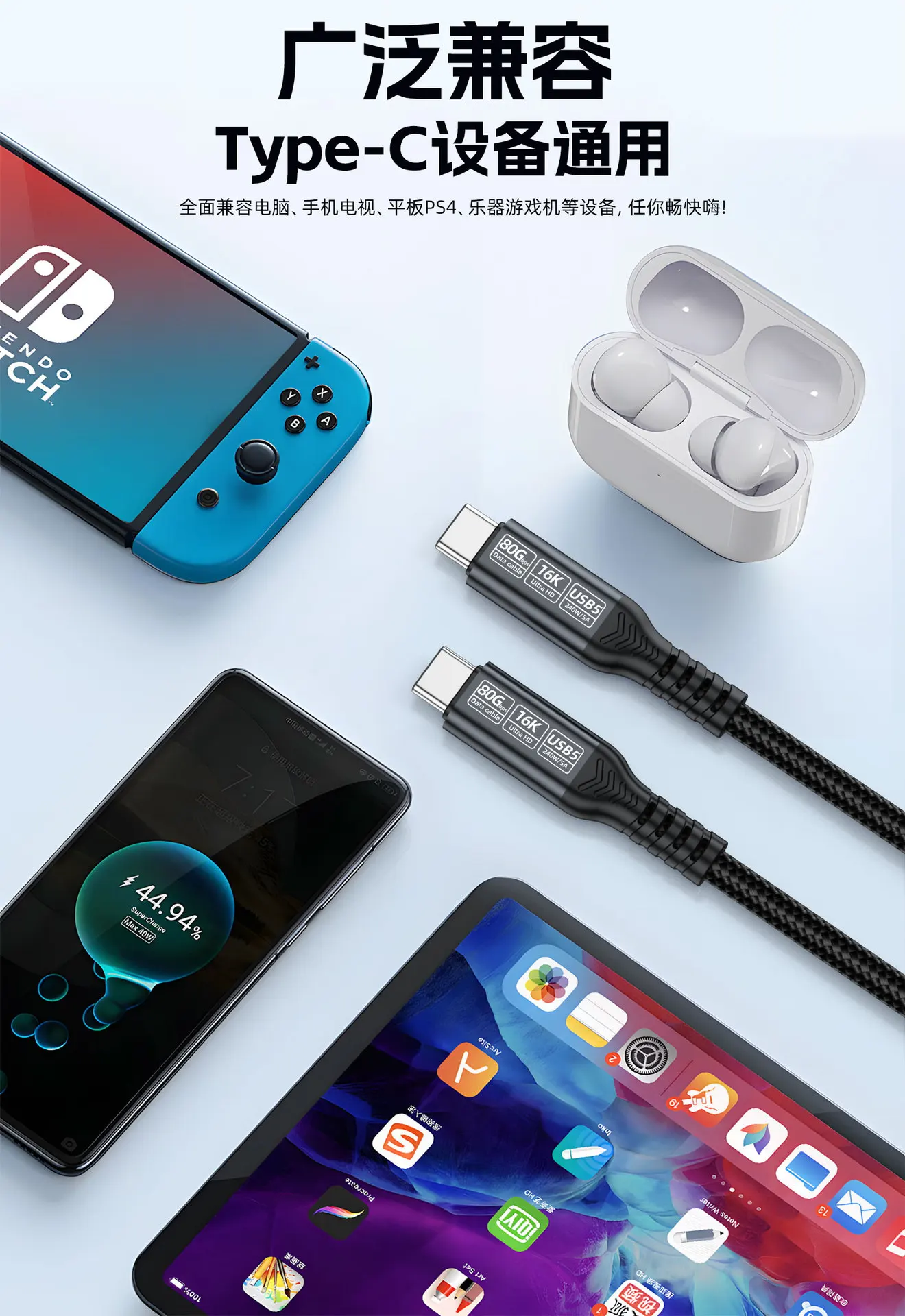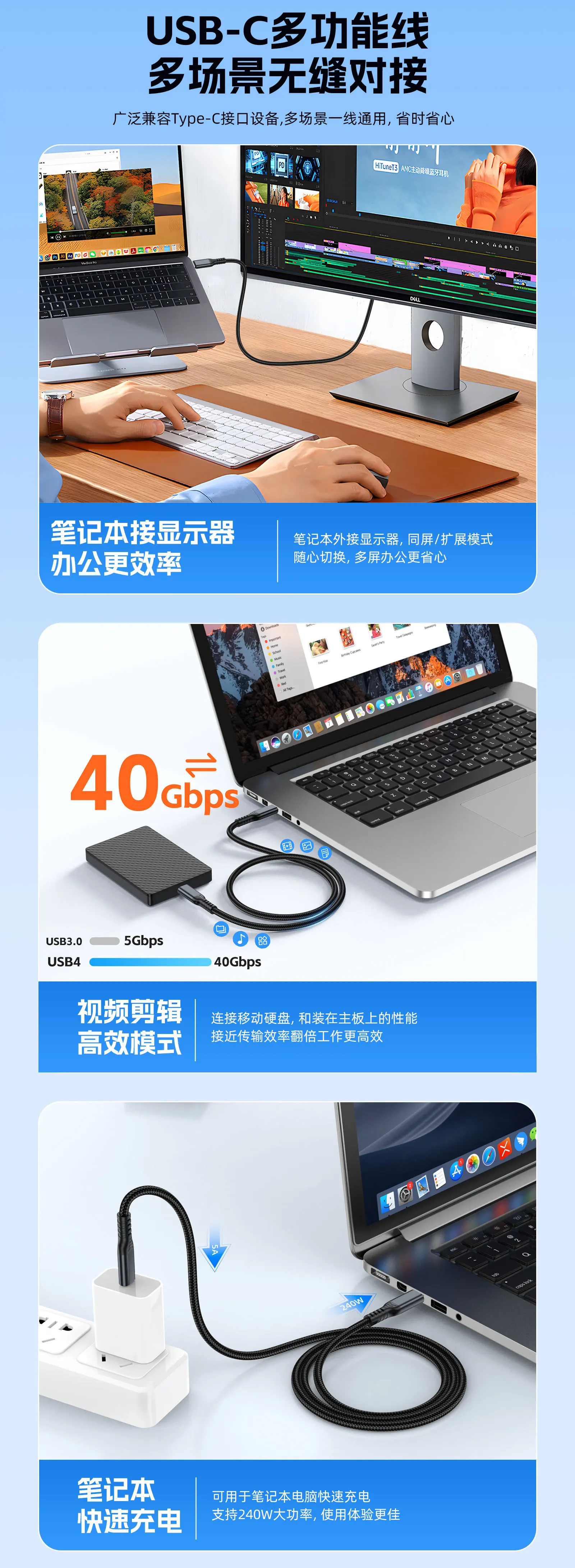 Cable USB5 tipo C de 16K, 60Hz, Cable de datos de transferencia de 80Gbps para disco duro, Cable de teléfono móvil USB C 4 PD 240W, carga rápida para ordenador portátil