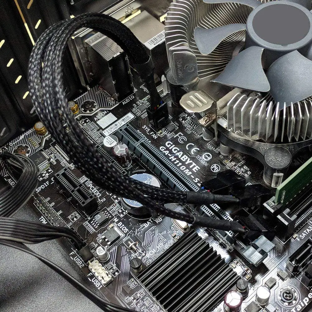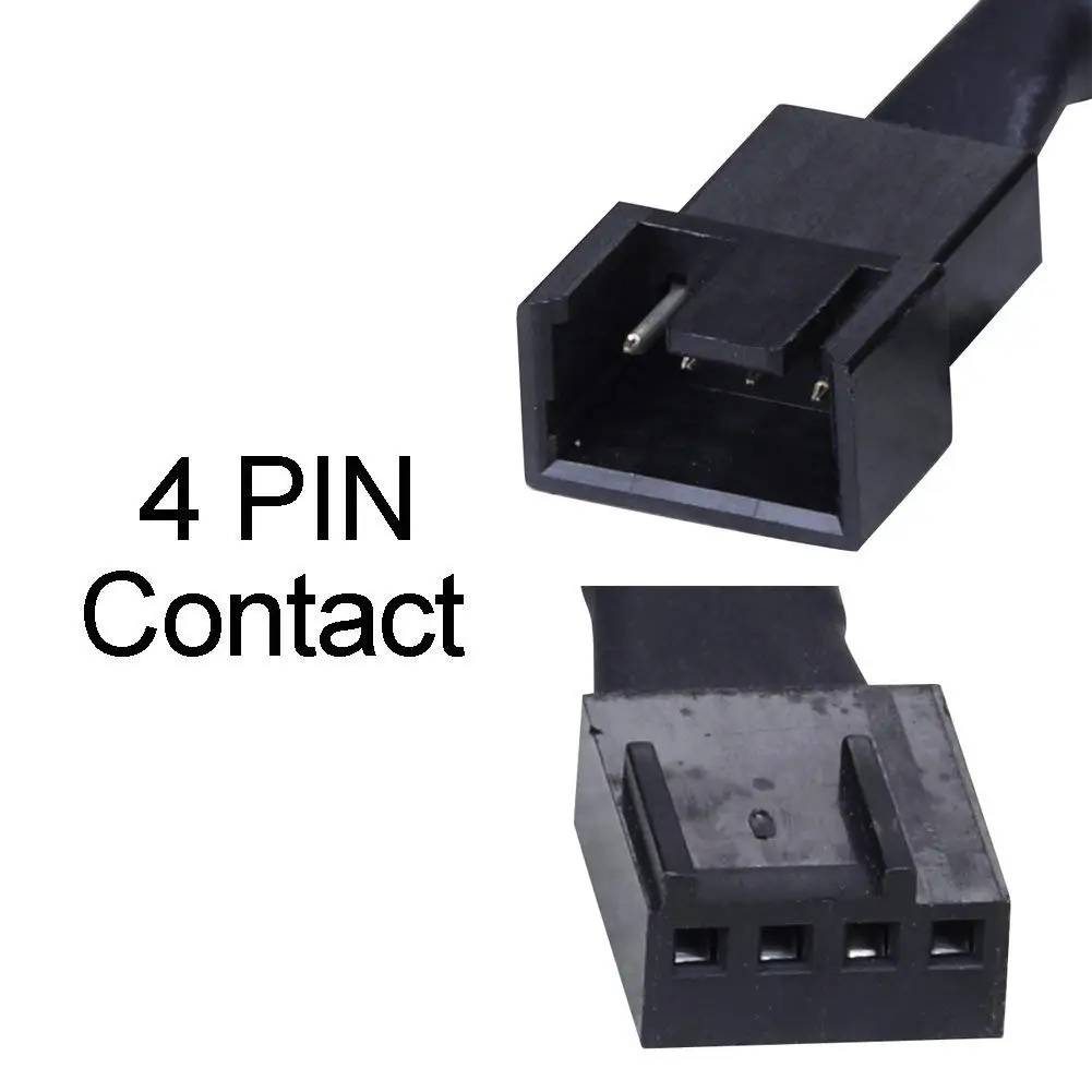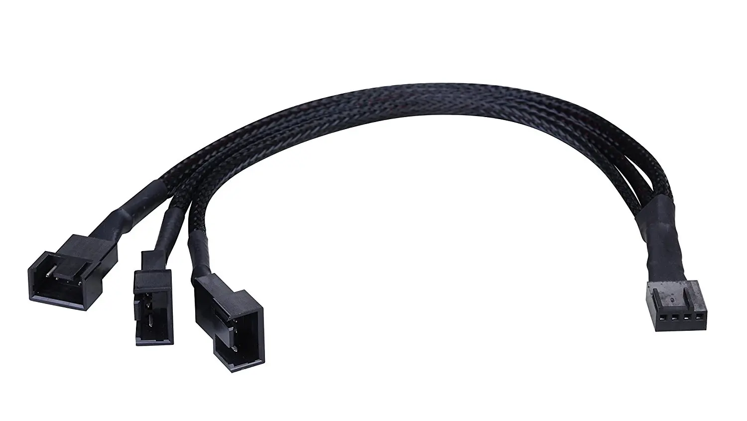 Este artículo permite tres ventiladores de 4 pines para usar un cabezal de placa base o un cable de alimentación estándar de 4 pines (ya sea de una fuente de alimentación o un controlador de ventilador)