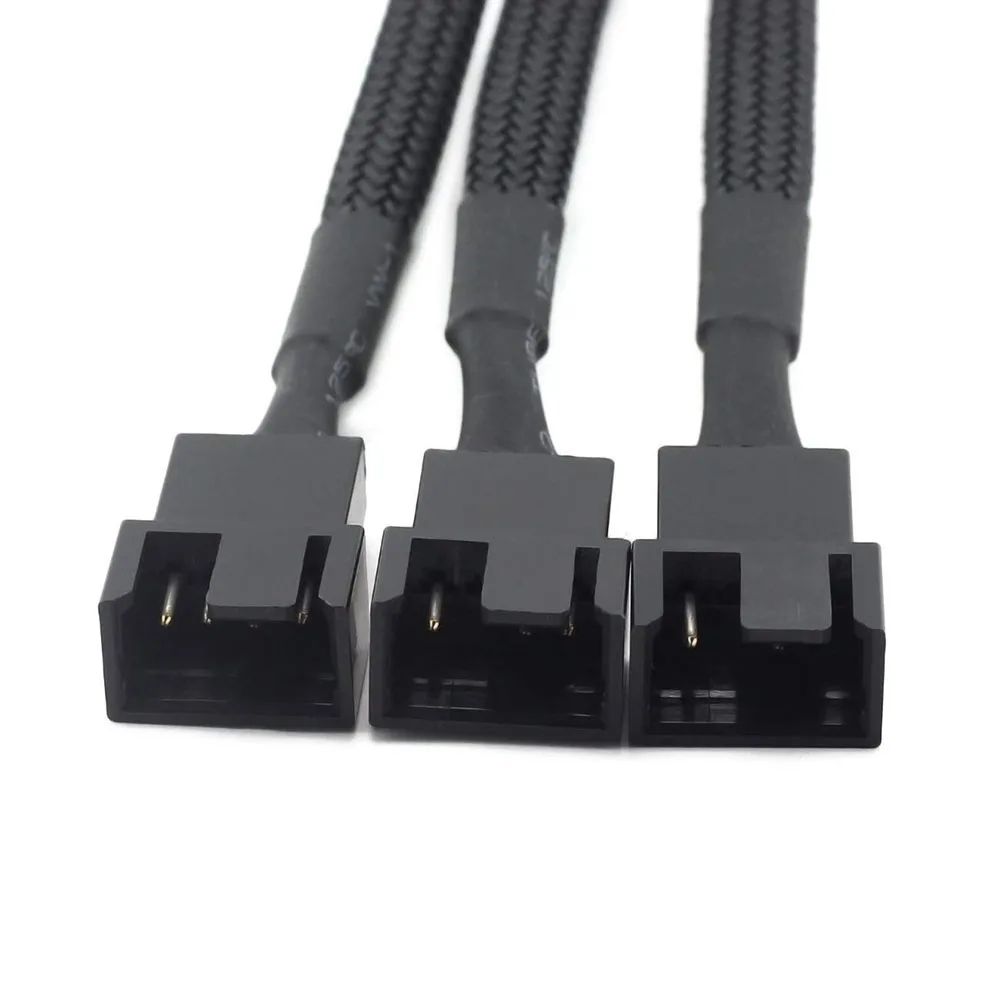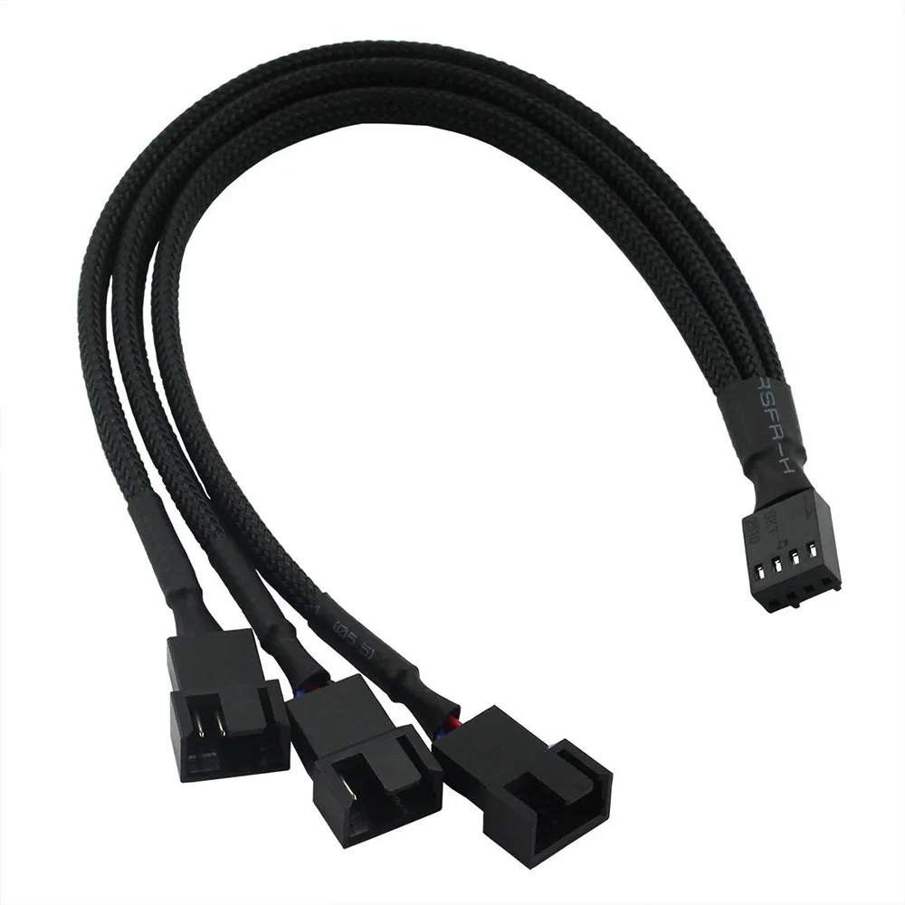 Cable de ventilador PWM de 4 pines Cable de extensión de manga negra divisor de 1 a 3 vías