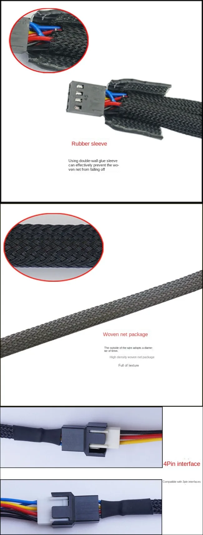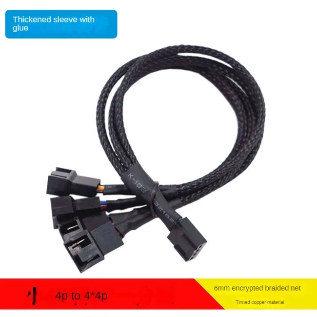 Comprar Cable de ventilador Pwm de 4 pines, divisor de 1 a 2/3/4 vías, funda negra, conector de Cable de extensión de 27cm, Cables de extensión PWM