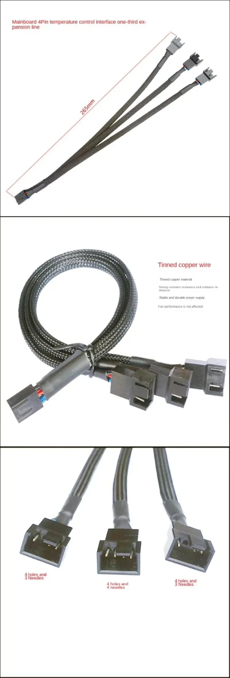 Comprar Cable de ventilador Pwm de 4 pines, divisor de 1 a 2/3/4 vías, funda negra, conector de Cable de extensión de 27cm, Cables de extensión PWM