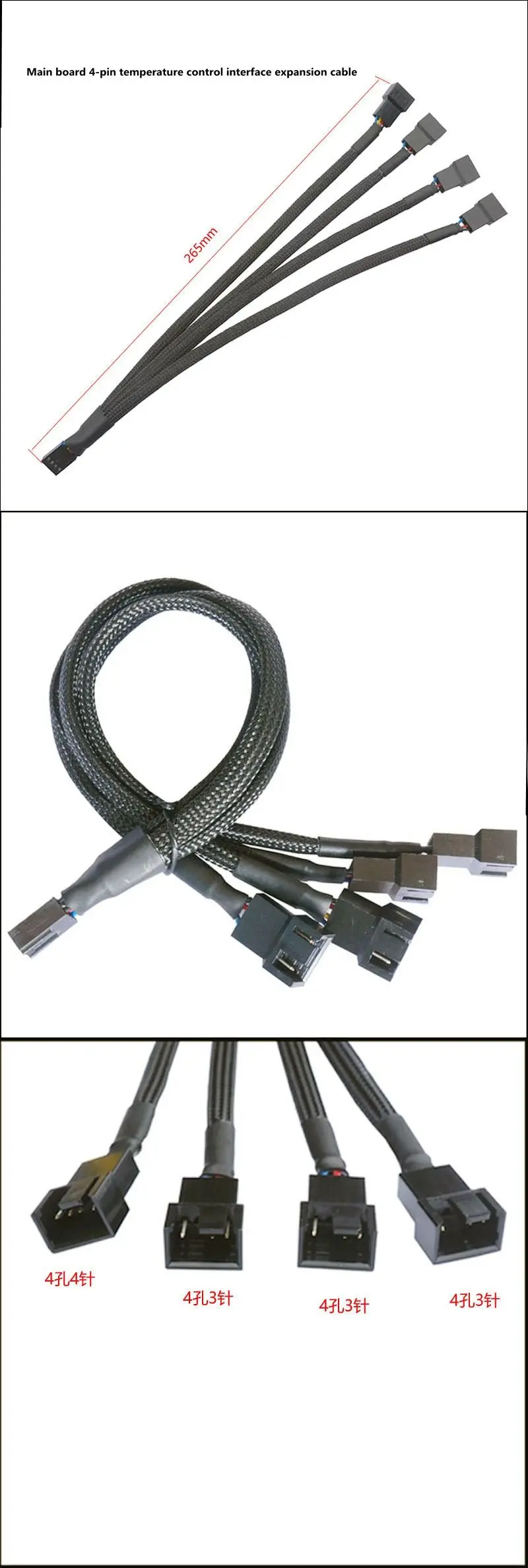Nombre del producto: Control de temperatura PWM 4 pines 1/4/1/3/2/1/1 Cable de extensión de conexión de ventilador [Esta interfaz se puede utilizar tanto para 3 pines como para 4 pines]
