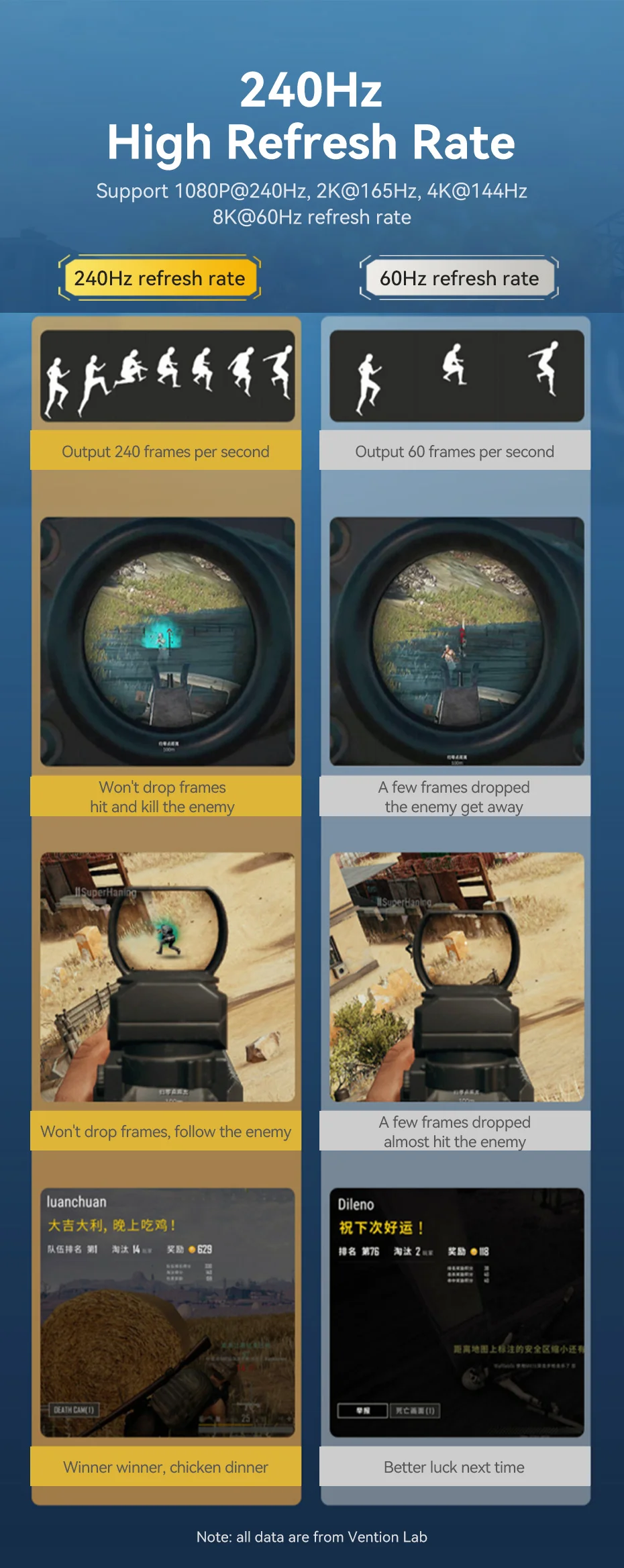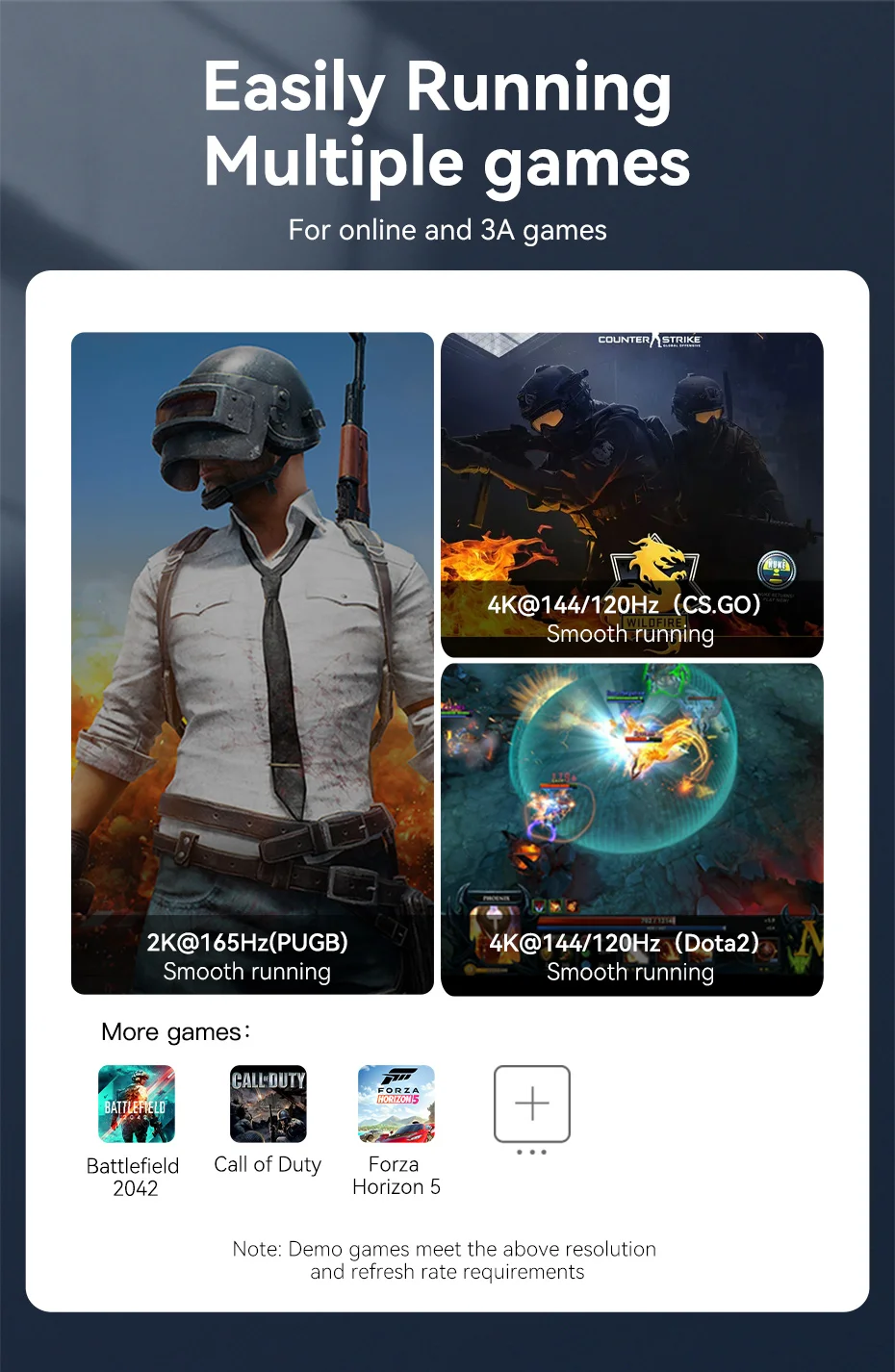 Admite 1080P@240Hz,2K@165Hz,4K@144Hz