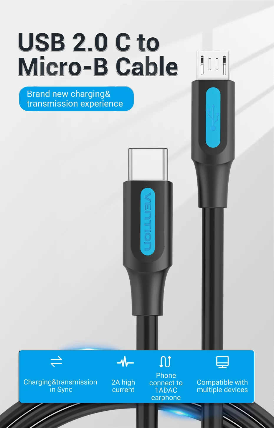Comprar Cable Vention tipo C a Micro USB, adaptador USB tipo C rápido para Samsung, Huawei, Xiaomi, MacBook pro, OTG, Cable Micro USB para teléfono móvil