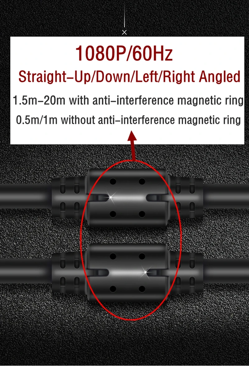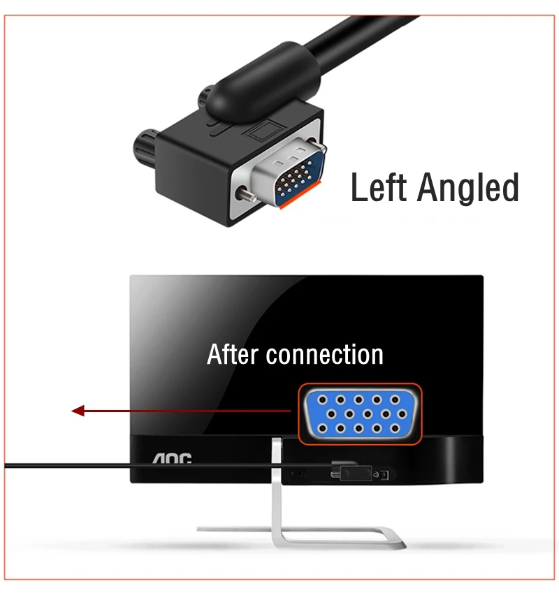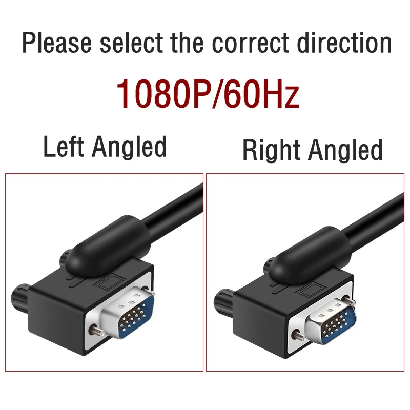 Comprar Cable VGA 1080p para Monitor de ordenador, conector estándar de 15 Pines, 90 grados, derecho, Izquierdo, arriba y abajo, Cable SVGA macho para escritorio