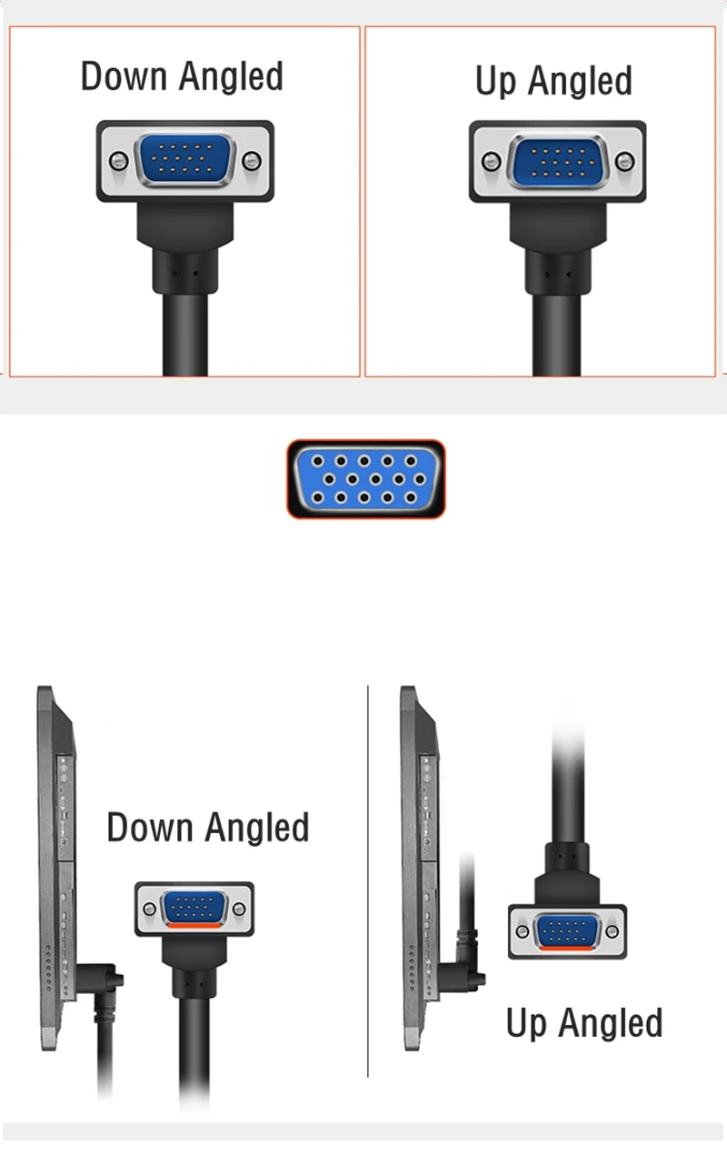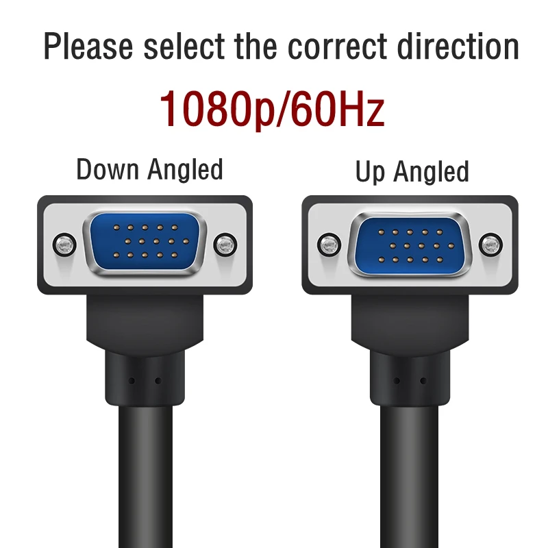 Comprar Cable VGA 1080p para Monitor de ordenador, conector estándar de 15 Pines, 90 grados, derecho, Izquierdo, arriba y abajo, Cable SVGA macho para escritorio
