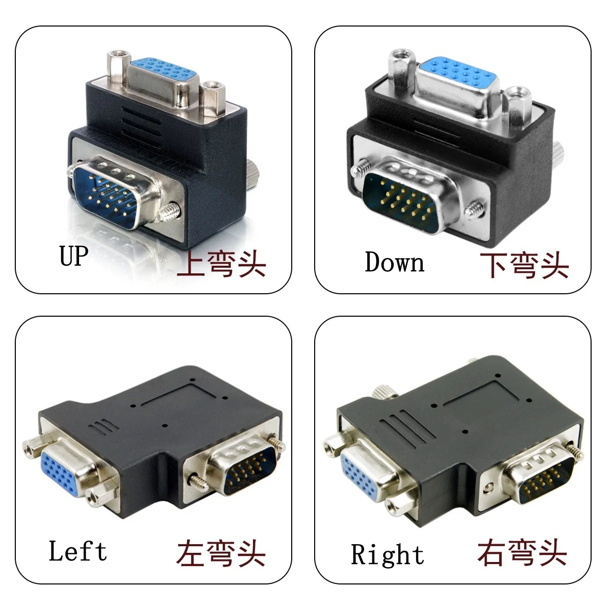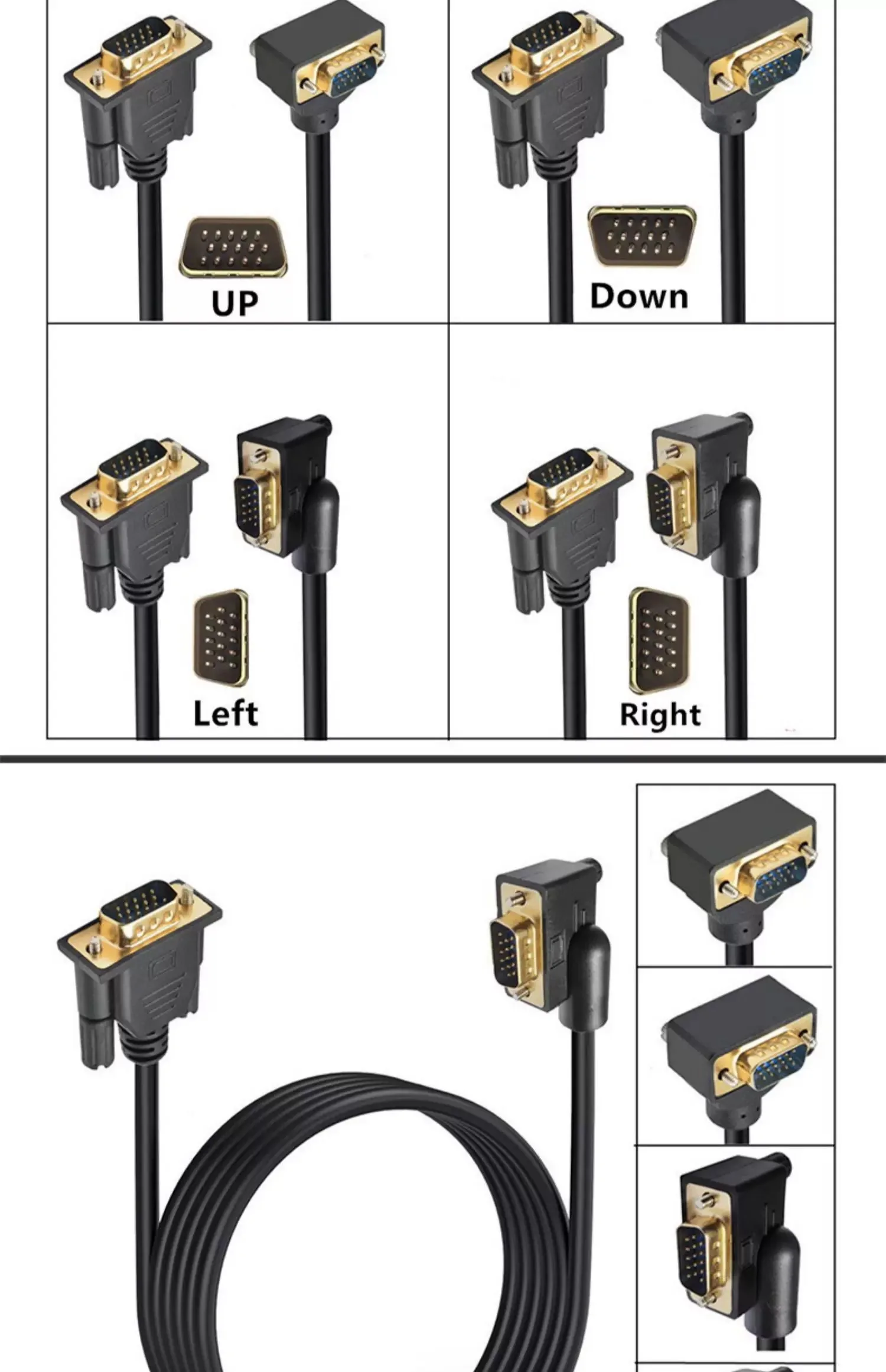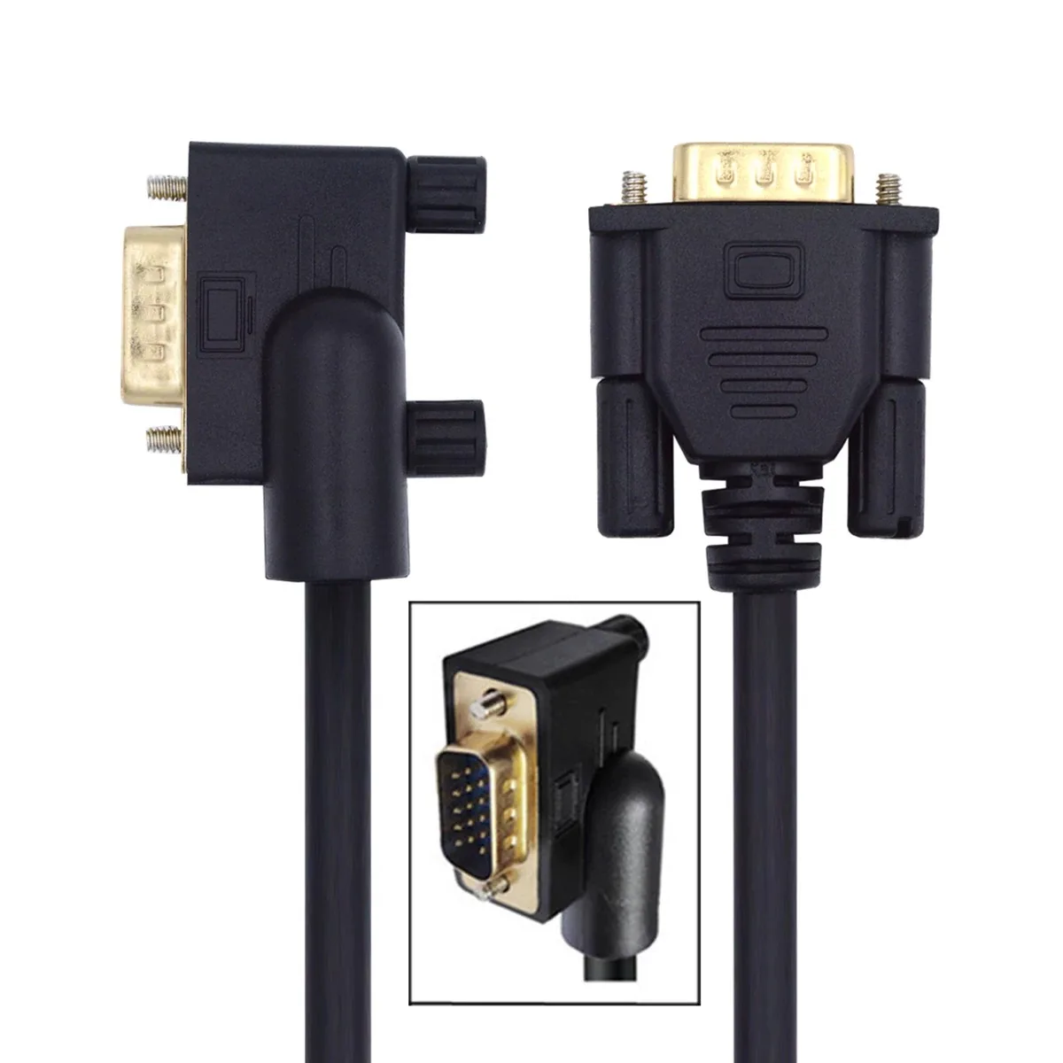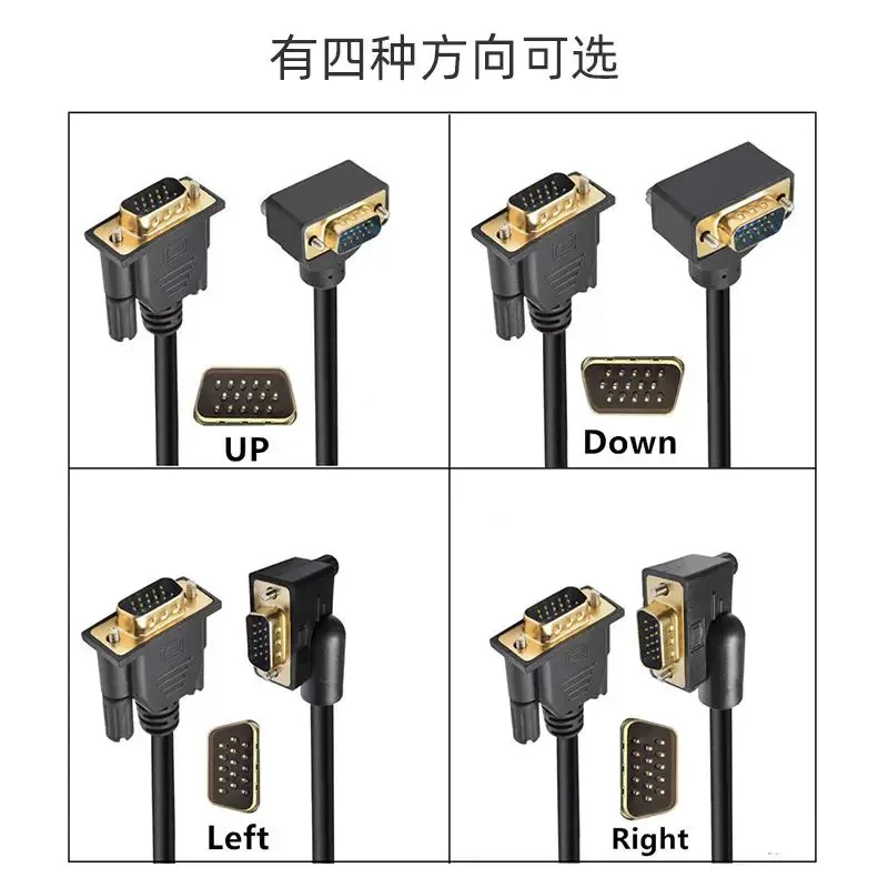 Cable monitores VGA RGB de 15 pines macho a macho en ángulo hacia abajo de 90 grados