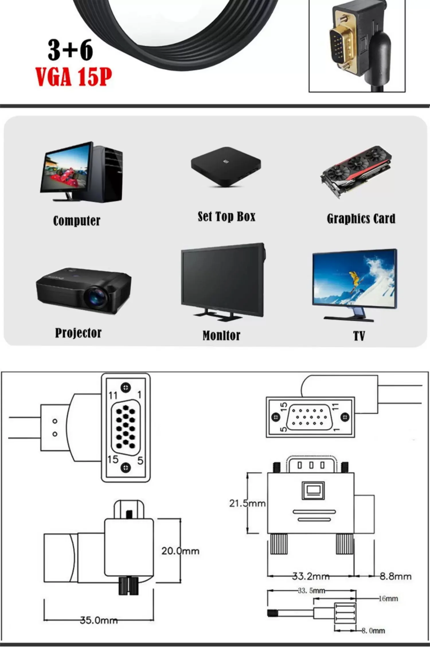* Conector: VGA macho a macho