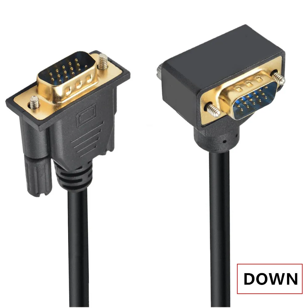 Cable monitores VGA RGB de 15 pines macho a macho en ángulo hacia abajo de 90 grados