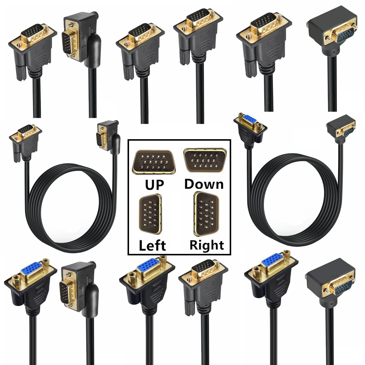 Comprar Cable VGA 3 + 6 en ángulo de 90 grados, Cable de extensión RGB HD de 15 pines macho a macho para PC, Monitor de ordenador, proyector de TV, 50cm, 1,5 m, 3m