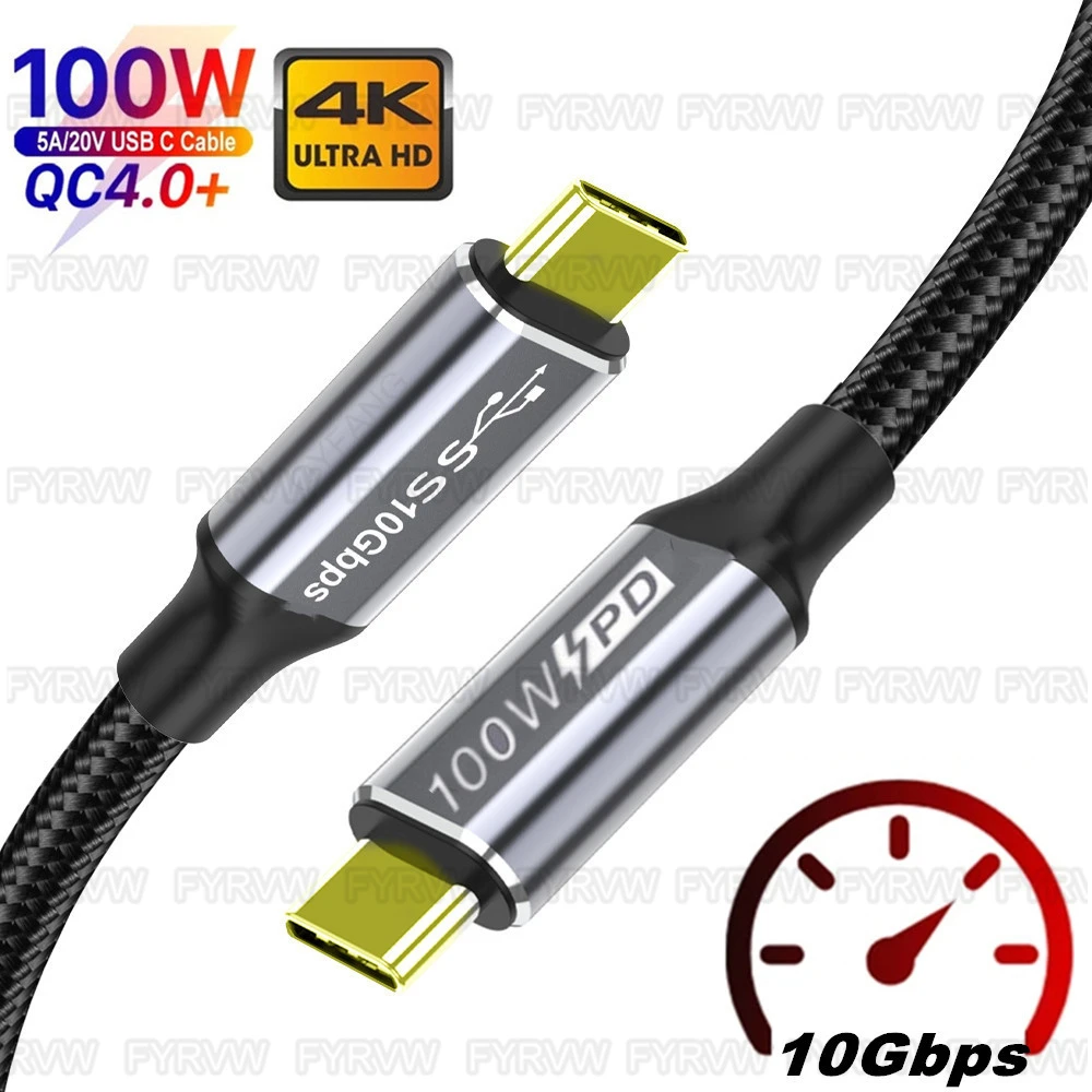 Comprar Cable de vídeo 4K USB3.1 Gen2, Cable de datos rápido tipo C, 5A, PD, 100W, 10gbps, USB 3,2, para Samsung S21, Macbook Pro