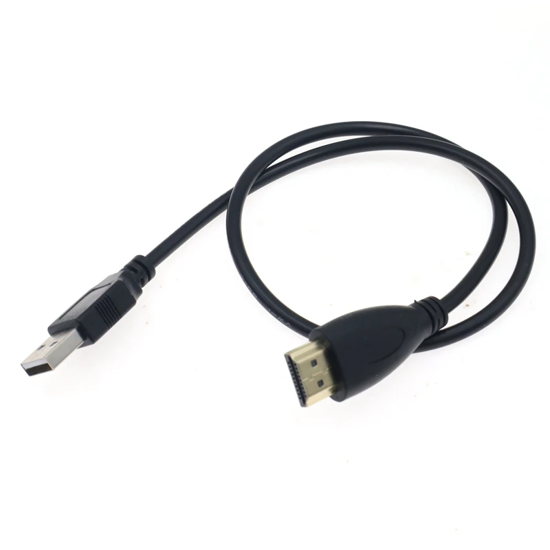 .Conector adaptador macho a hembra compatible con HDMI con cable de alimentación de cargador USB 2.0 de 50 cm.