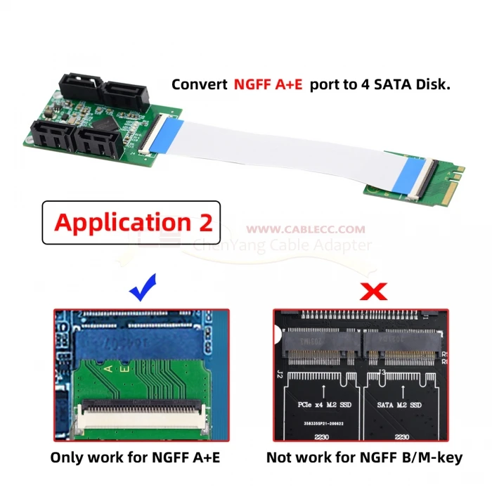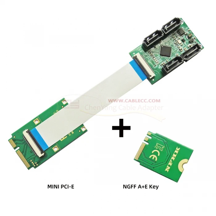 Comprar Cablecc-Adaptador de cuatro puertos NGFF A + E Key y Mini PCI-E PCI Express A SATA 3,0, Cable adaptador, tarjeta de extensión de disco duro para SSD