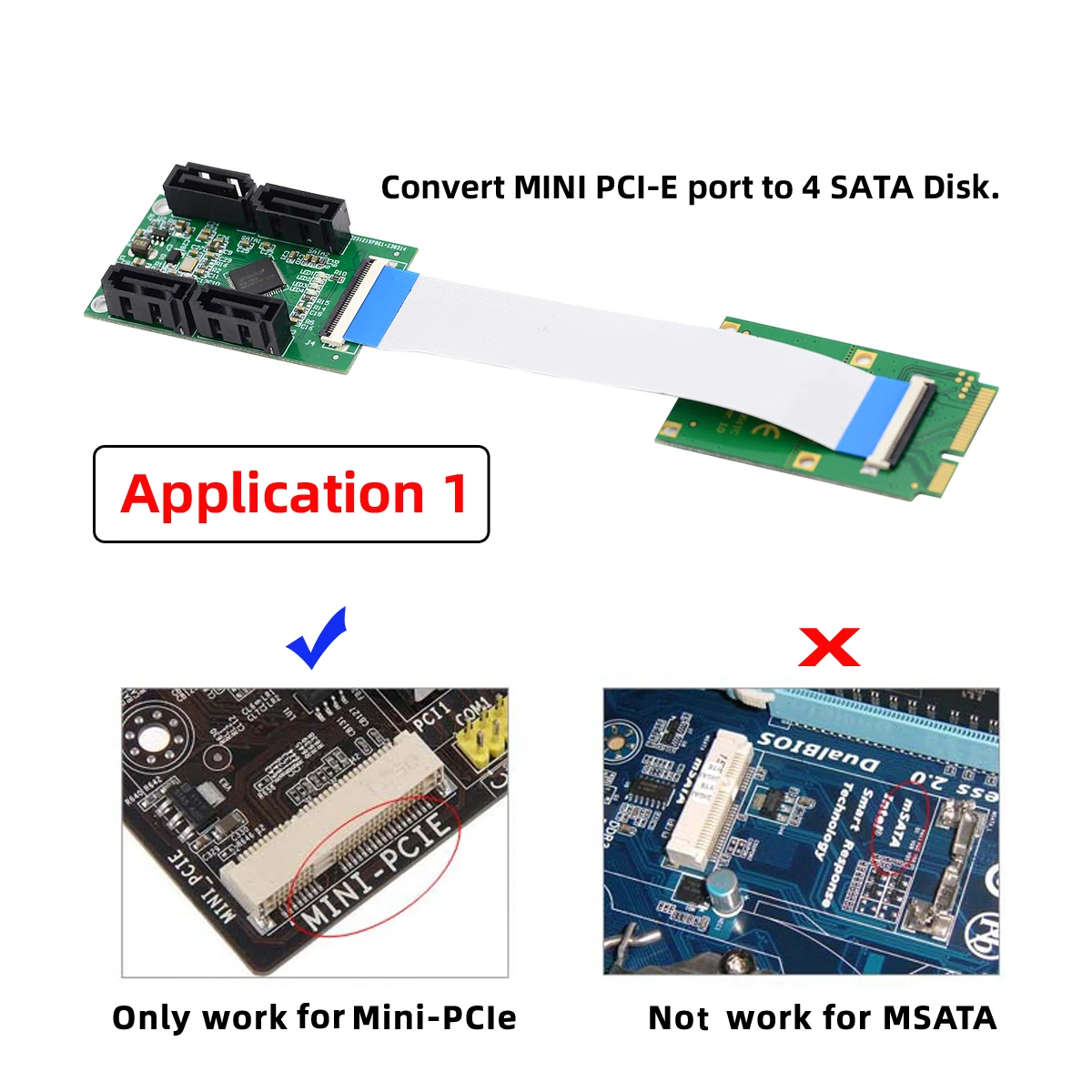 Mini PCI-E PCI Express y NGFF A + E Key a SATA 3,0 Cable adaptador de cuatro puertos Tarjeta de extensión de disco duro de 6Gbps para SSD