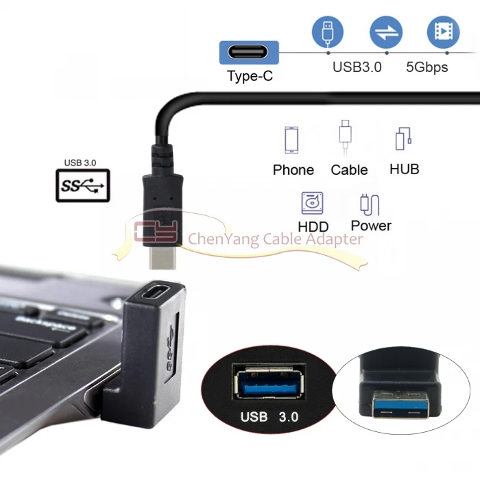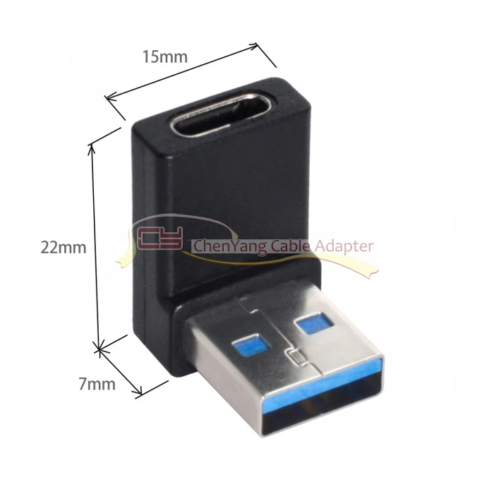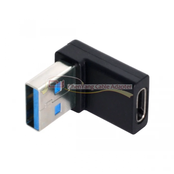 Adaptador DE DATOS macho tipo C hembra de 90 grados en ángulo hacia abajo a USB 3,0 A para computadora portátil de escritorio