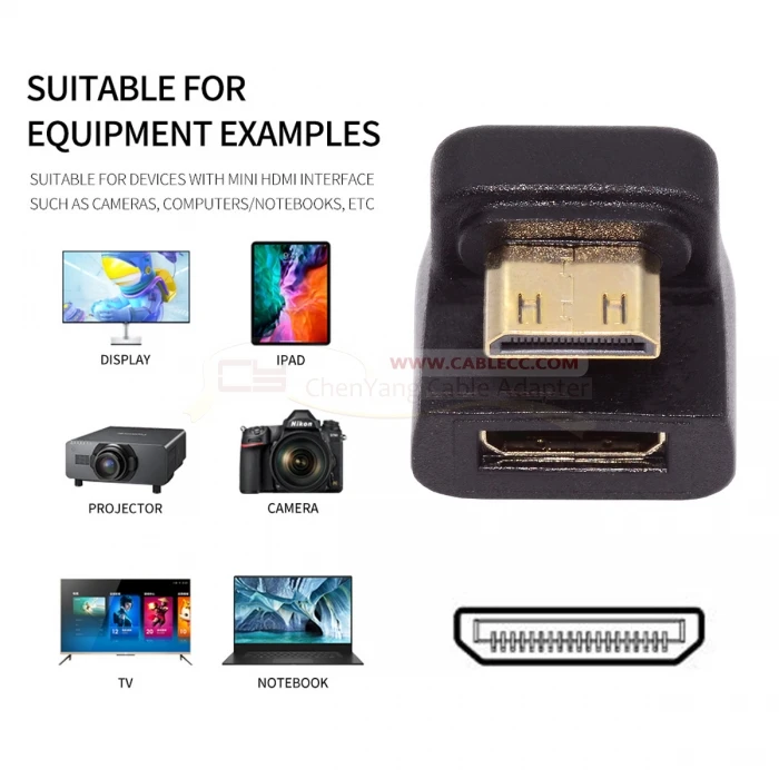 Comprar Cablecc Adaptador en ángulo trasero en forma de U en ángulo de 360 grados Mini HDTV 1.4 Convertidor de extensión macho a hembra