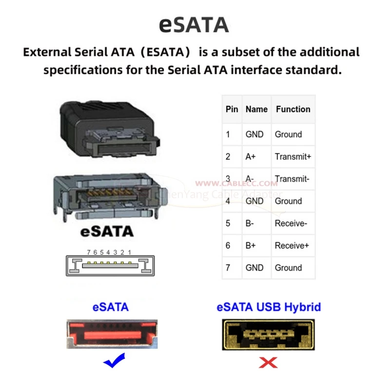 Los conectores eSATA están conectados de manera diferente para evitar el uso de cables SATA internos en aplicaciones externas.