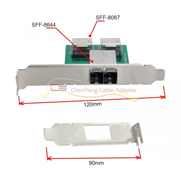 Comprar Cablecc-adaptador hembra SAS HD de doble puerto, adaptador con soporte de perfil bajo, SFF-8644 a interno, Mini SAS SFF-8087 PCBA