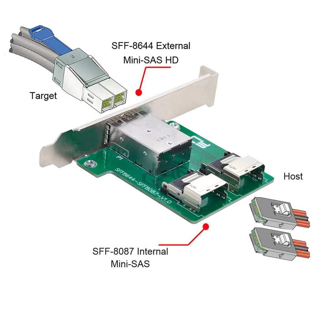 Comprar Cablecc-adaptador hembra SAS HD de doble puerto, adaptador con soporte de perfil bajo, SFF-8644 a interno, Mini SAS SFF-8087 PCBA