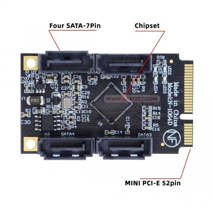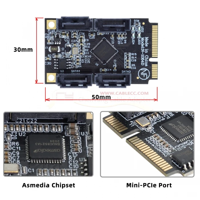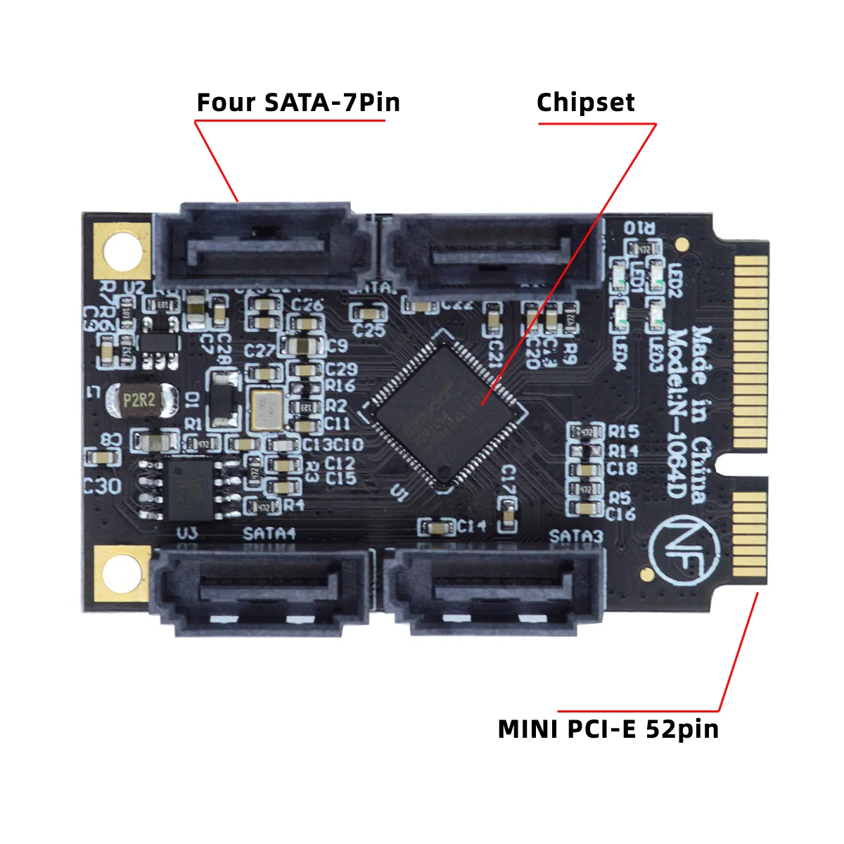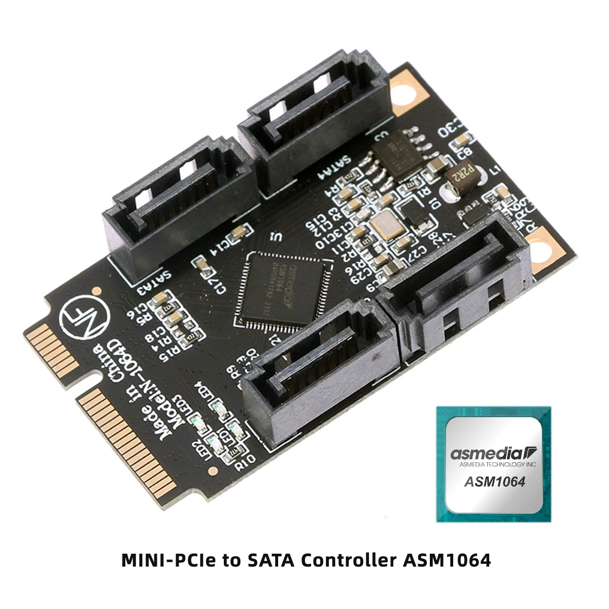 Cablecc 6Gbps Cuatro puertos SATA 3,0 Adapterto Mini PCI-E PCI Express Card Converter para extensión de disco duro