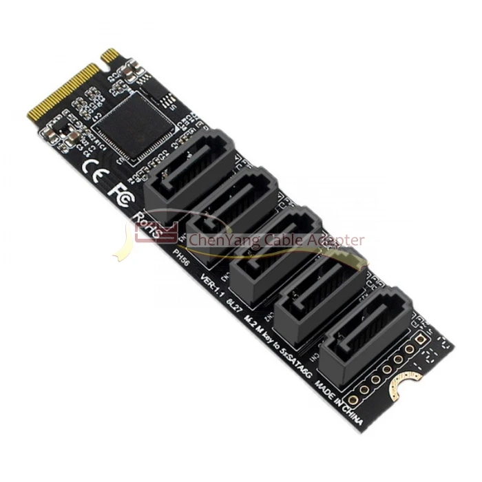 Comprar Cablecc-adaptador NGFF NVME m-key 6Gbps de 5 puertos, convertidor PCI Express a SATA 3,0, tarjeta de extensión de disco duro JMB585 2280