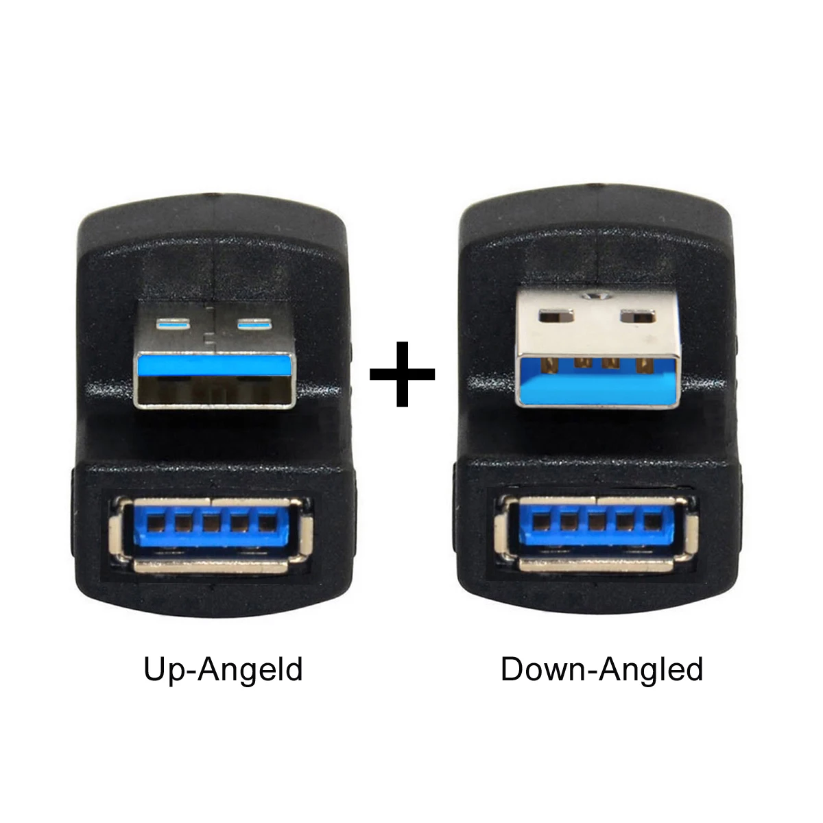 1 Juego de adaptador USB 3,0 en ángulo hacia arriba y hacia abajo A extensión macho a hembra de 180 grados