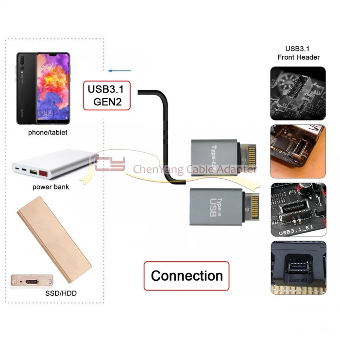 Adaptador 1: Tipo-E macho Tipo-C hembra Adaptador de 10Gbps