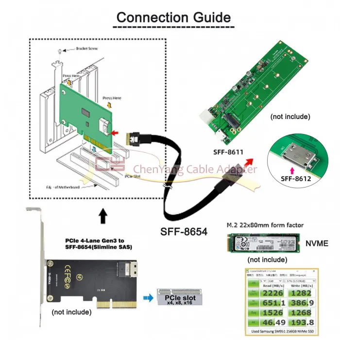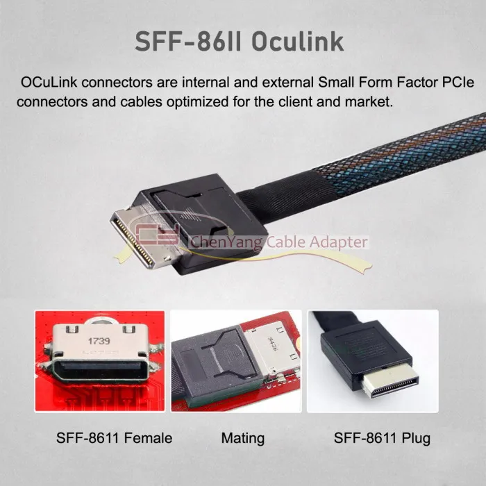 Por ejemplo, un plano posterior con un conector de a un controlador con conector OCuLink A LA SFF-8611.