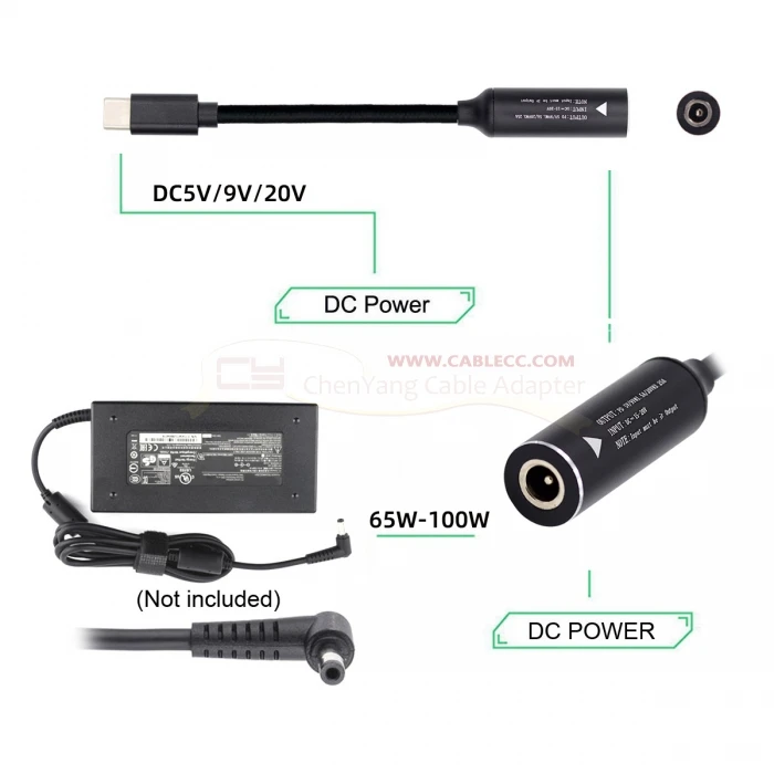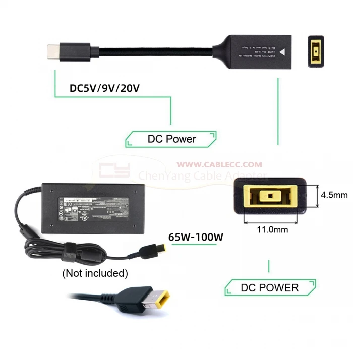 PD9V 15V 20V Rectángulo Jack Thinkpad X1 Entrada al cable de carga del enchufe de alimentación tipo C para teléfono portátil
