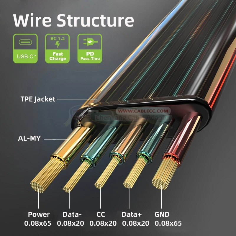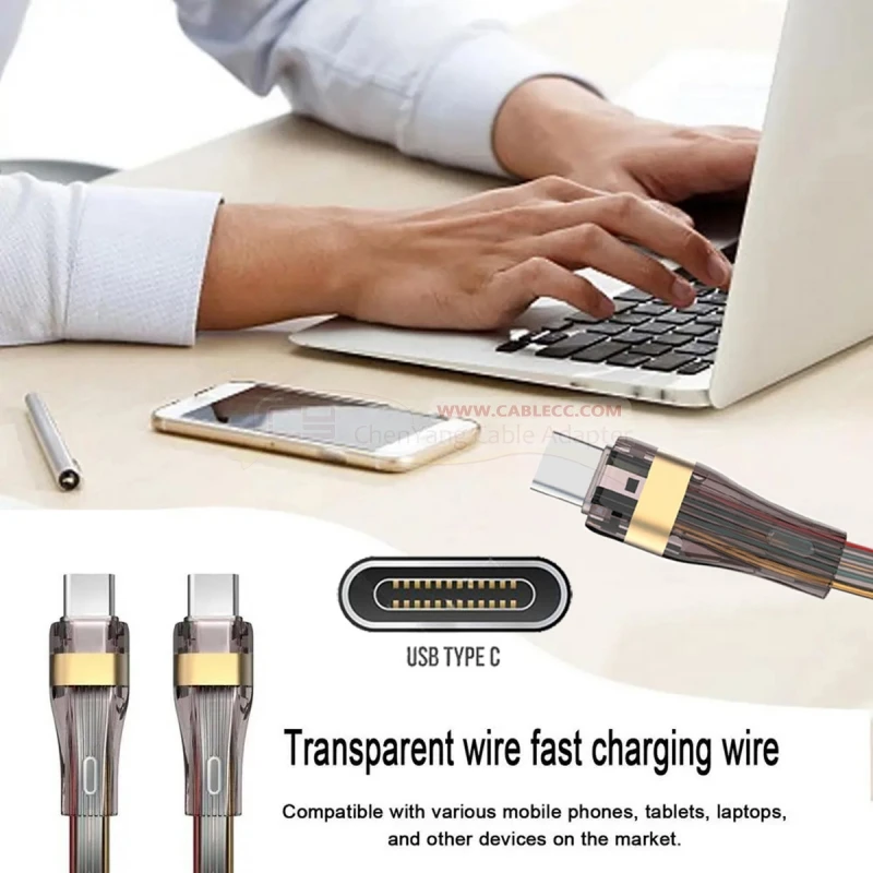Cablecc-Cable DE DATOS ultradelgado tipo C a tipo C USB2.0, cable de alimentación de 65W, carga rápida para ordenador portátil, tableta y teléfono
