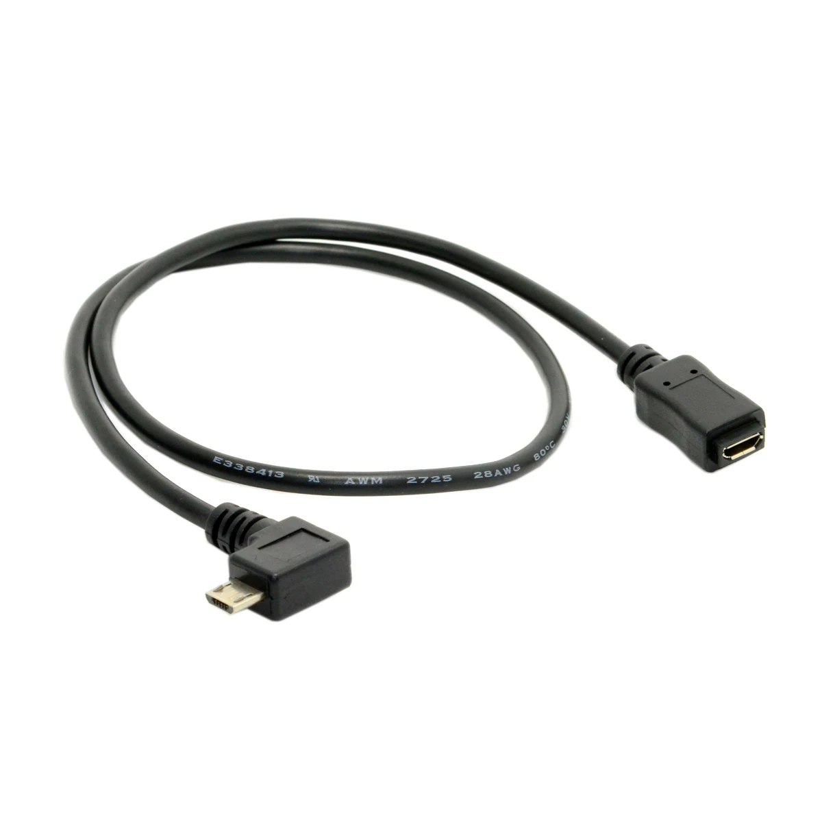 Comprar Cablecc-Cable de extensión Micro USB 2,0, 50cm, 90 grados, ángulo recto, macho a hembra, para tableta y teléfono