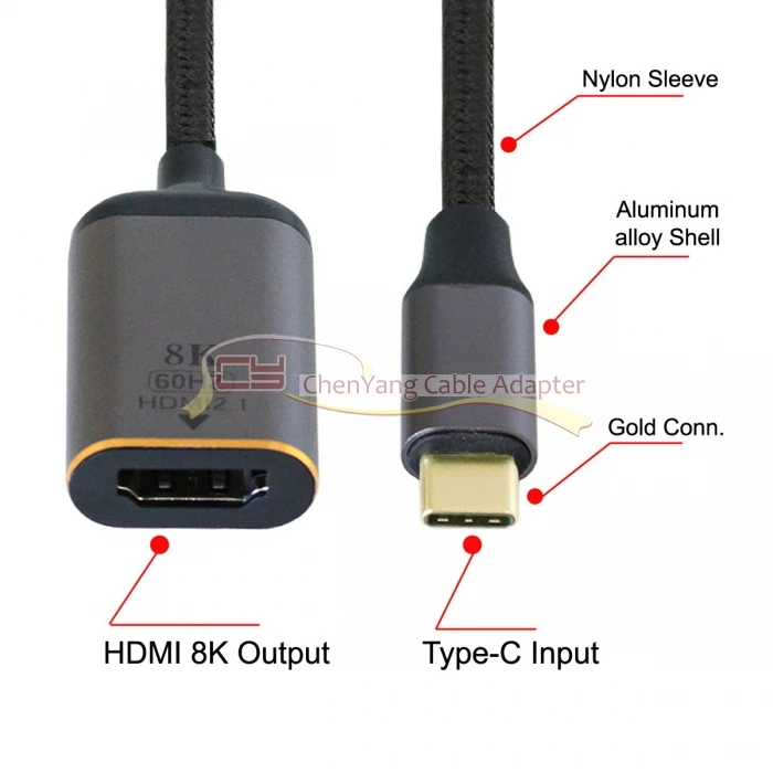 USB4 Fuente de tipo C a hembra HDMI 2,0 Pantalla 8K 60HZ UHD 4K HDMI Cable de monitor macho
