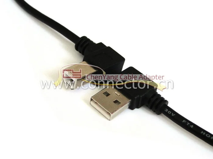 El USB 2,0 A tipo macho y el B tipo macho tienen un ángulo de 90 grados.