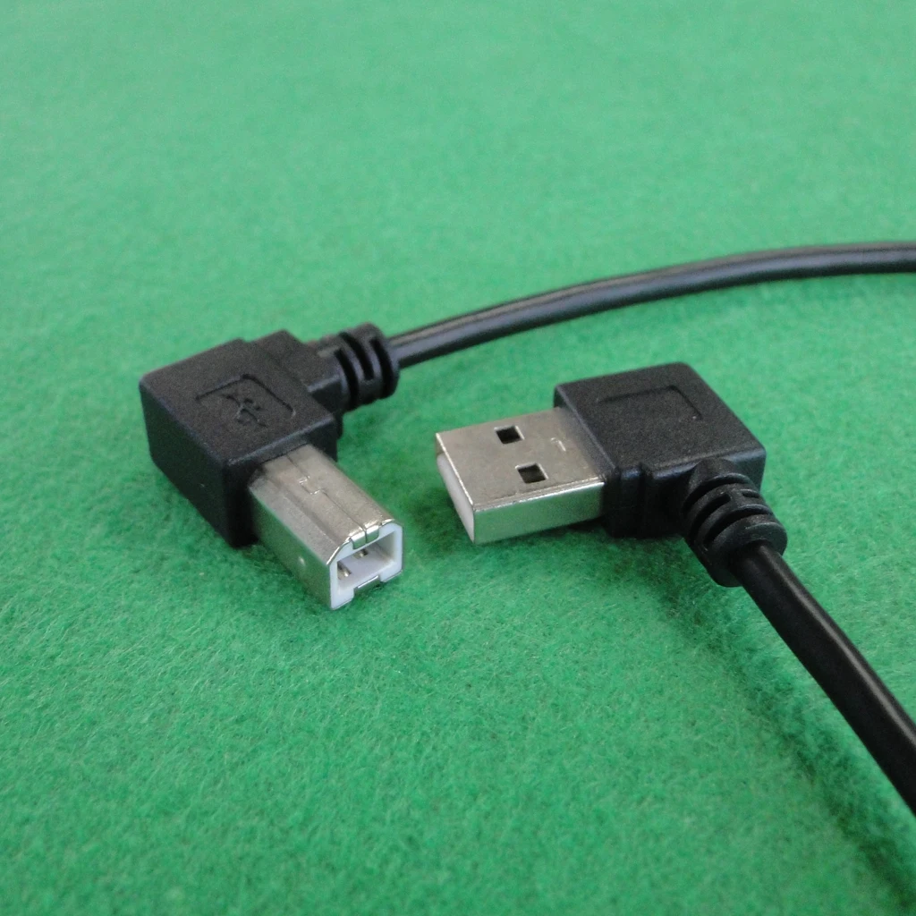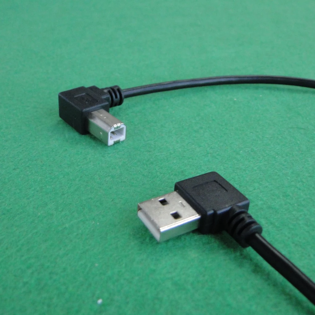 El USB 2,0 A tipo macho y el B tipo macho tienen un ángulo de 90 grados.