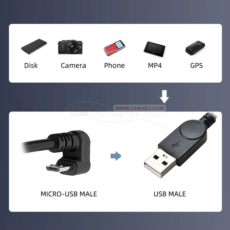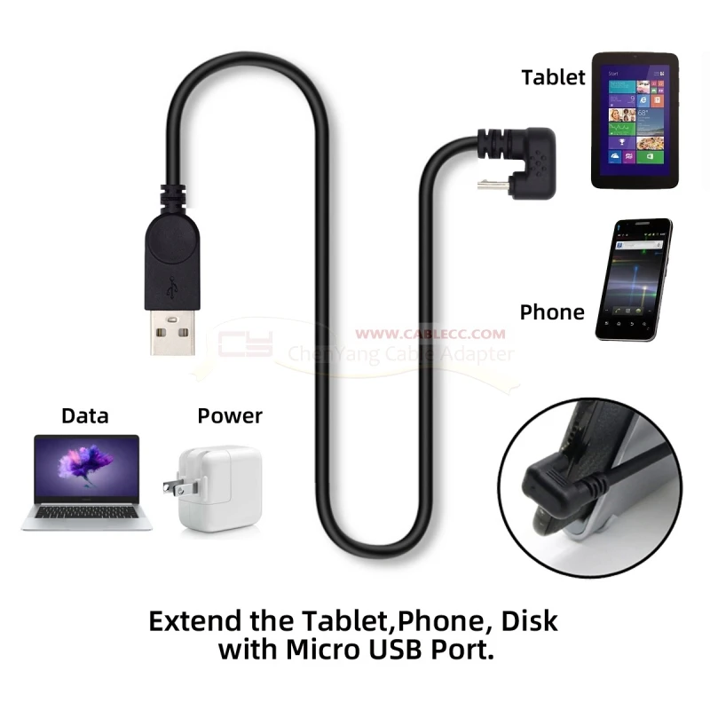 CY Cable USB2.0 en ángulo de 180 grados en forma de U opuesta en ángulo trasero tipo A a Micro USB Cable DE DATOS macho de 5 pines para dispositivo Micro USB