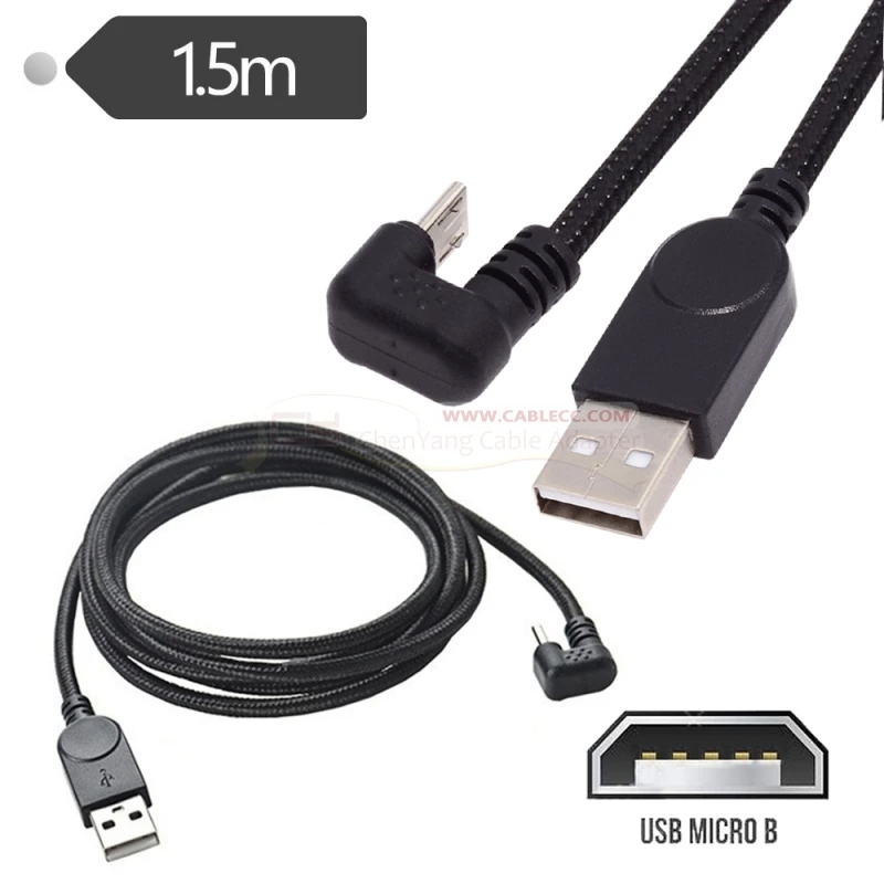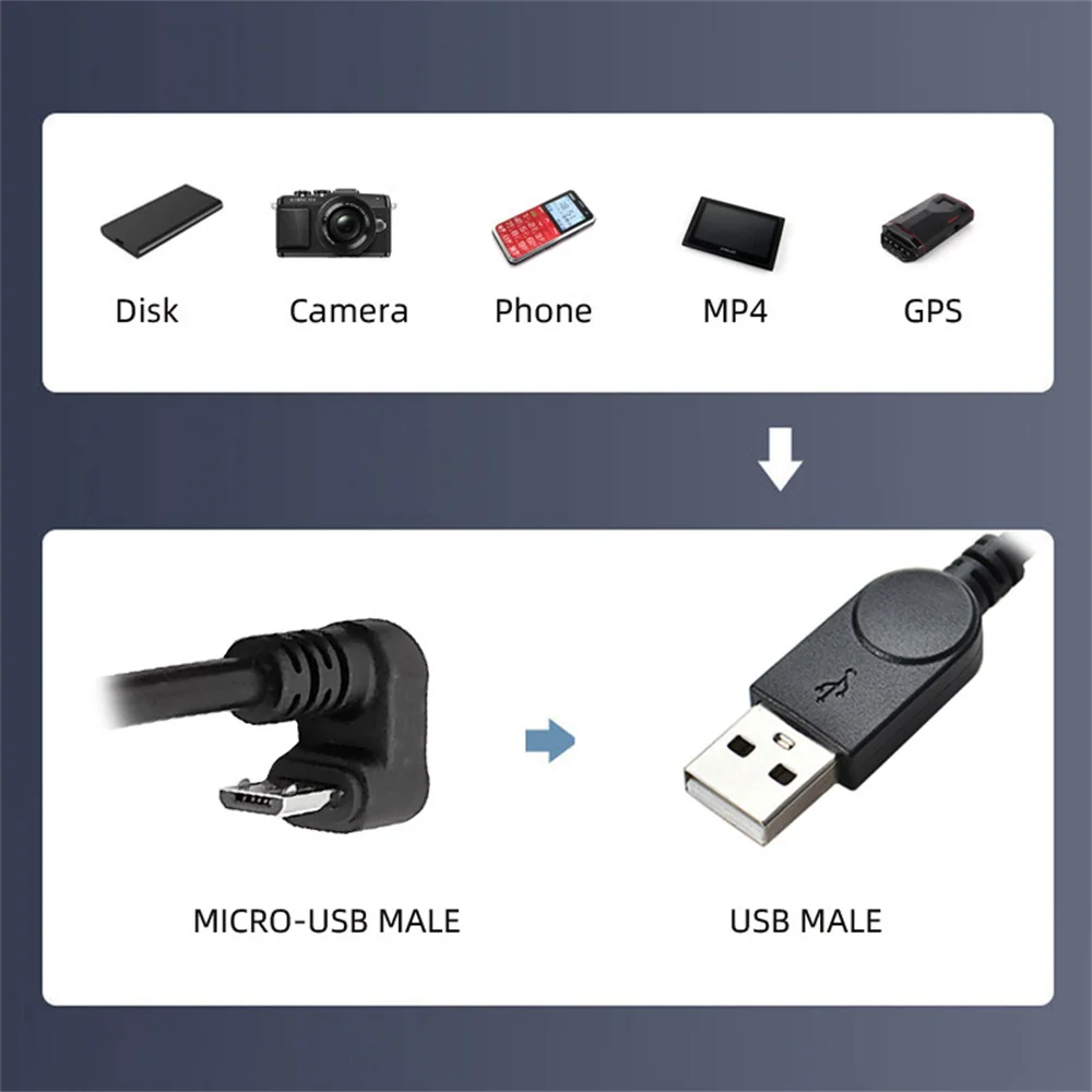 USB2.0 Tipo-A a Micro USB 5 pines macho a macho Cable de datos de alimentación 480Mbps Micro opuesto en forma de U en ángulo trasero