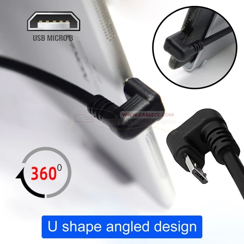Comprar Cablecc-Cable USB 2,0 con ángulo de 180 grados, Cable de datos macho tipo A Micro USB de 5 pines, en forma de U opuesta, para dispositivo Micro USB
