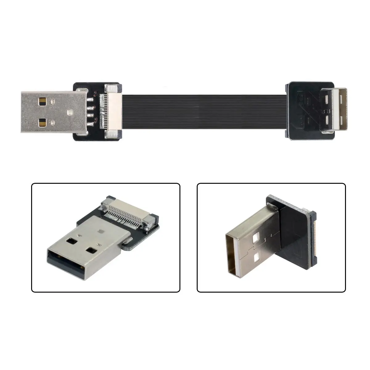 Cable FPC Delgado plano de datos USB 2,0 tipo A macho a tipo A macho de 90 grados para FPV, disco, escáner e impresora