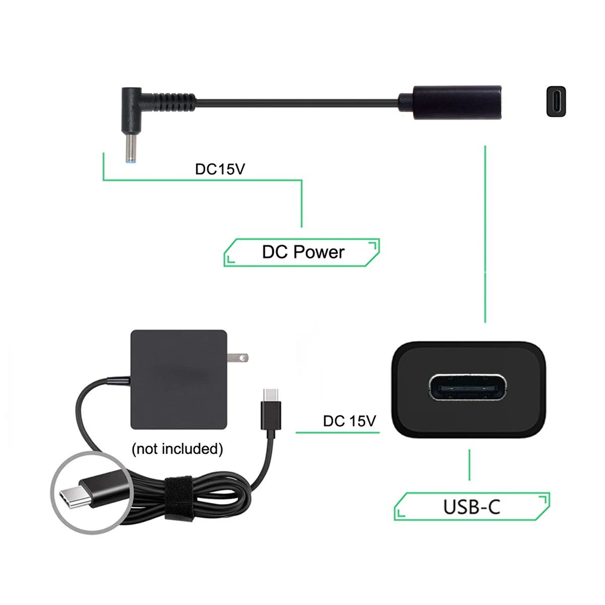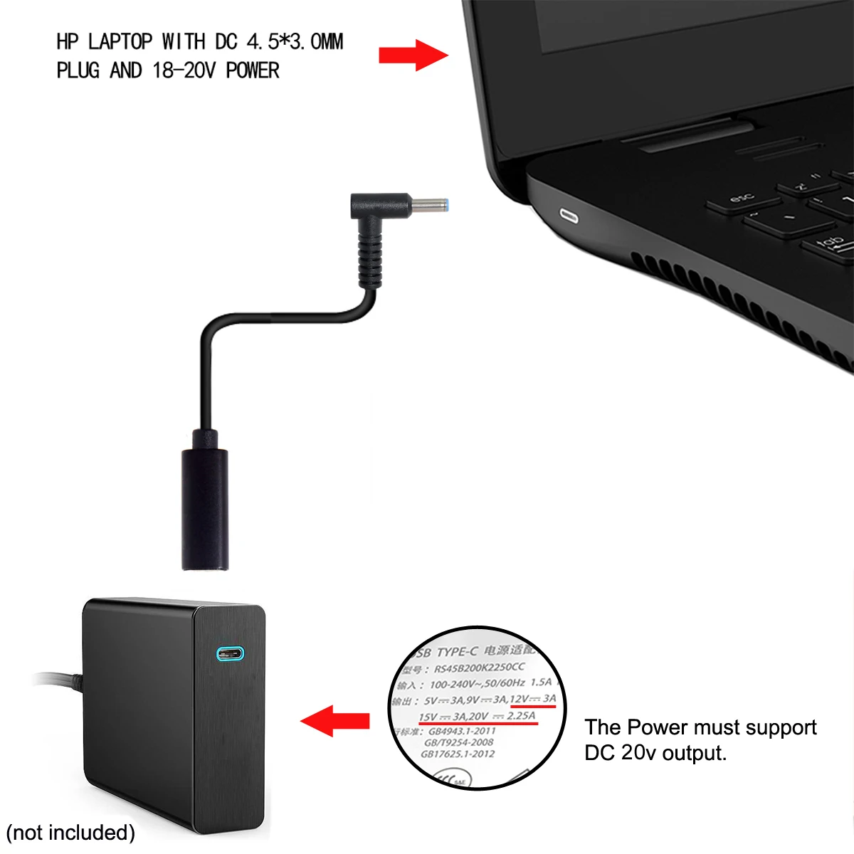 Comprar Cablecc CYDZ-Cable de carga tipo C para ordenador portátil HP, USB-C hembra de entrada a CC de 4,5x3,0mm, PD, 18-20V