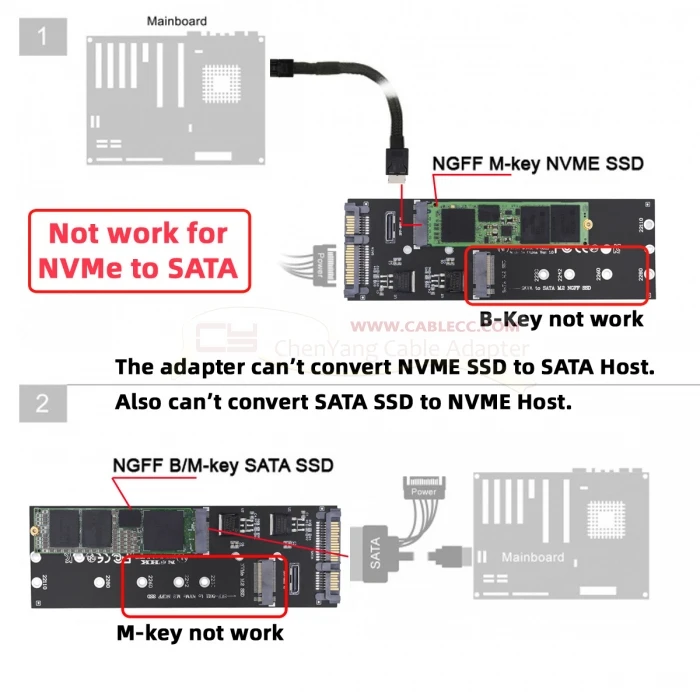 3. No puede convertir NVME a SATA, tampoco puede convertir NGFF/SATA a Oculink.