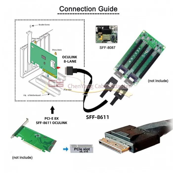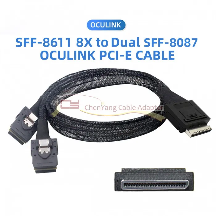 Comprar Cablecc OCuLink PCIe pci-express SFF-8611 8x 8-Lane a Dual SFF-8087 4x SSD Cable activo de datos 50cm