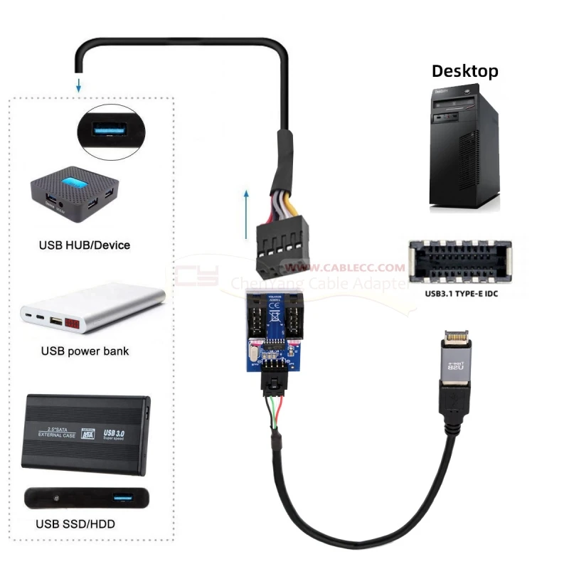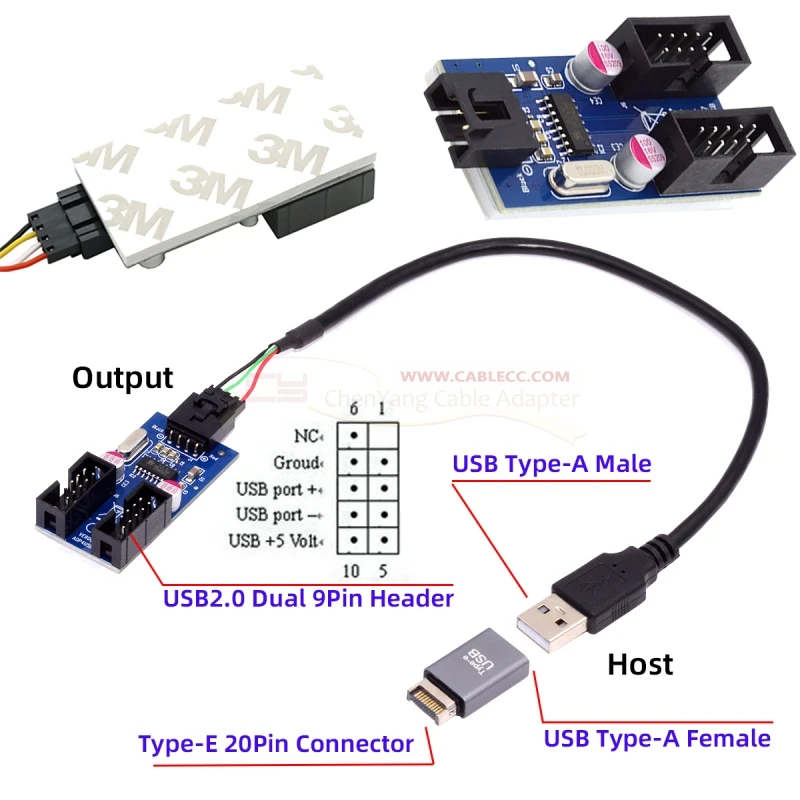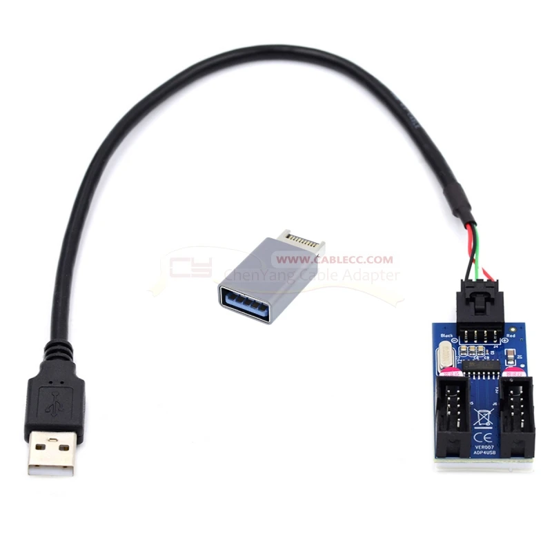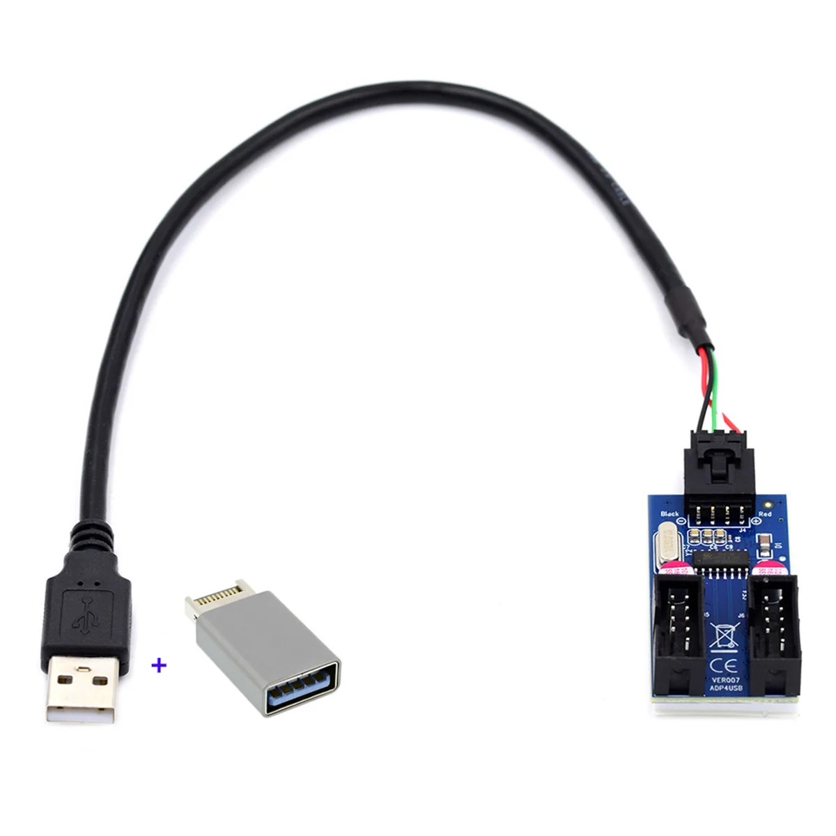 USB 3,1 Panel frontal Header Macho Tipo-E a USB 2,0 Tipo-A Hembra y Dual Hembra Placa base 9pin 10pin Header HUB Adaptador Puerto Multiplicador.El embalaje incluye un adaptador, un cable y un PCBA.