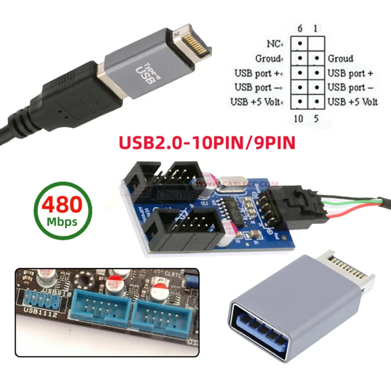 Comprar CableCC-Panel frontal USB 3,1, tipo E A USB 2,0, tipo A, 1 A 2, placa base, 9 pines, 10 pines, convertidor de cabezal, adaptador de concentrador, multiplicador de puerto