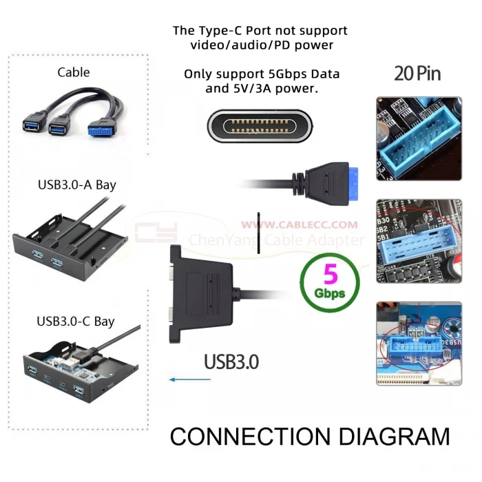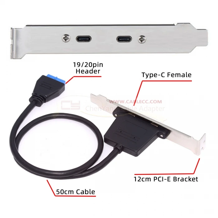 Comprar Cablecc-placa base a puertos duales USB 3,0, 19/20 Pines, USB-C tipo C y USB 3,0 hembra, Cable de Panel trasero PCI-E, 5gbps