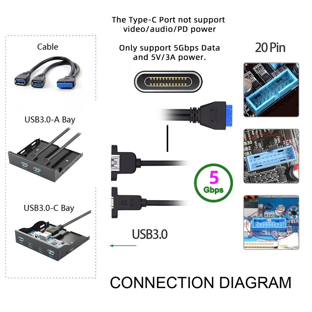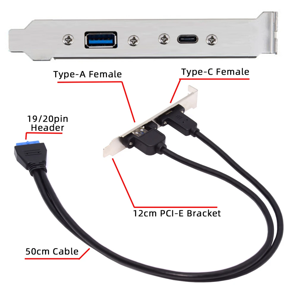 Comprar Cablecc-placa base a puertos duales USB 3,0, 19/20 Pines, USB-C tipo C y USB 3,0 hembra, Cable de Panel trasero PCI-E, 5gbps